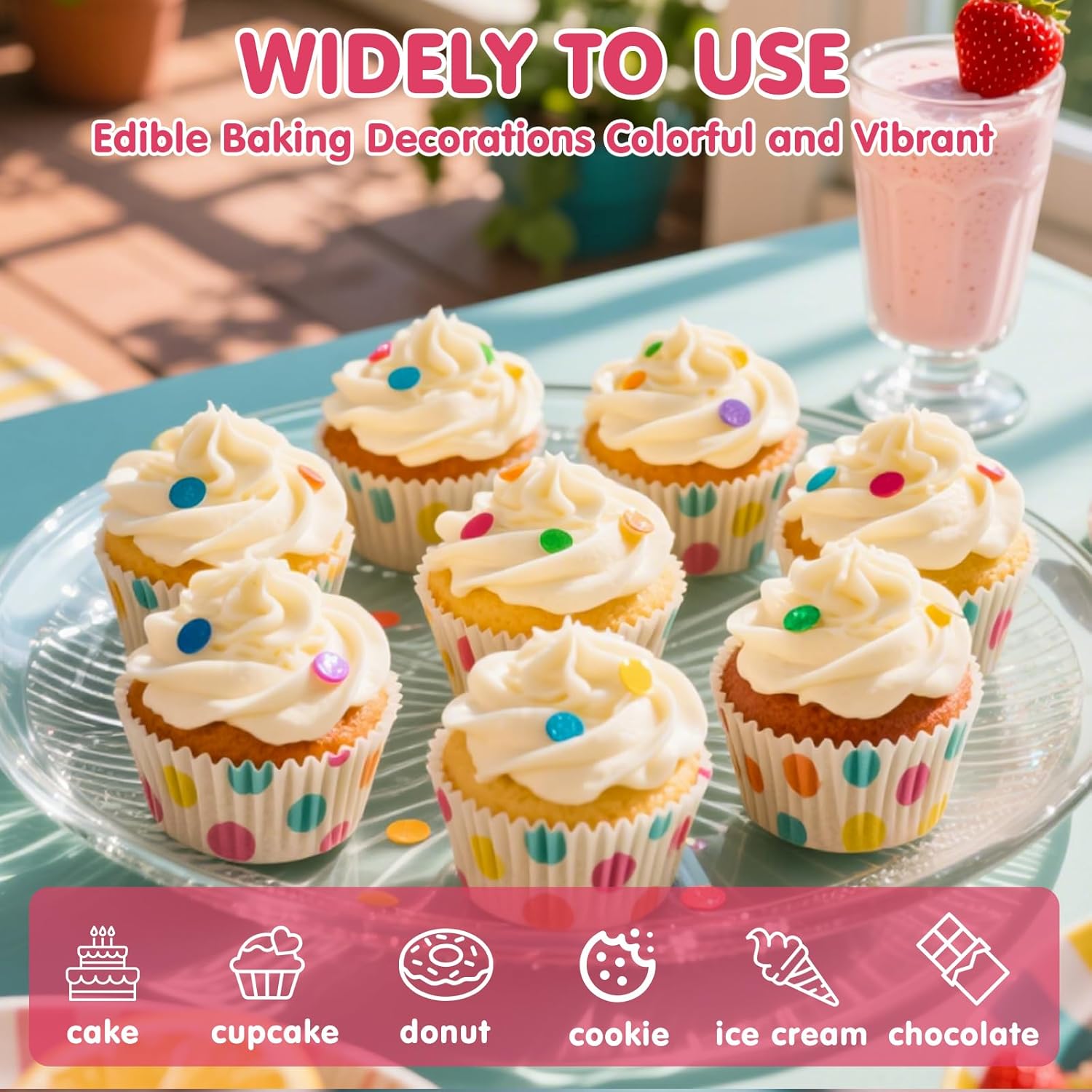 - Versatile Dessert Decoration:1 edible bottle of rainbow round shape sprinkles, 100g/3.53oz.Our sprinkles includes mix color sprinkles,perfect for meeting all your baking decoration needs.The sugar decorations are edibled candies.After baking, decorate the cookies or cake with pearl sugar to avoid melting