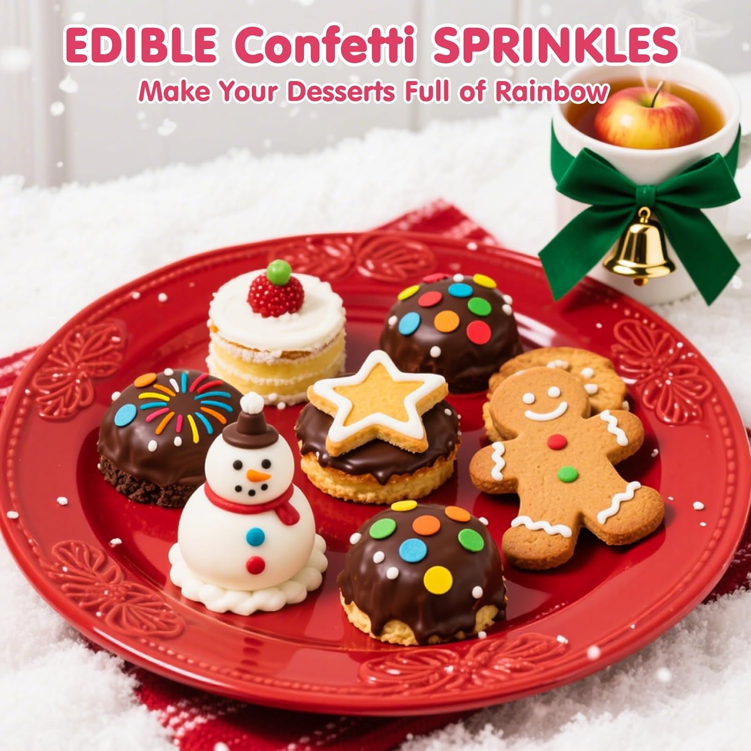 - Easy to Use:These Rainbow-themed toppings are a sprinkle mix of jimmies that turn your desserts into a one-of-a-kind masterpiece perfect for Birthdays, Christmas cookies, Christmas cakes, holiday desserts, Gingerbread houses, graduations, baby showers, holidays other occasions.Delight your guests with festive holiday sweet treats that make your party table stand out.