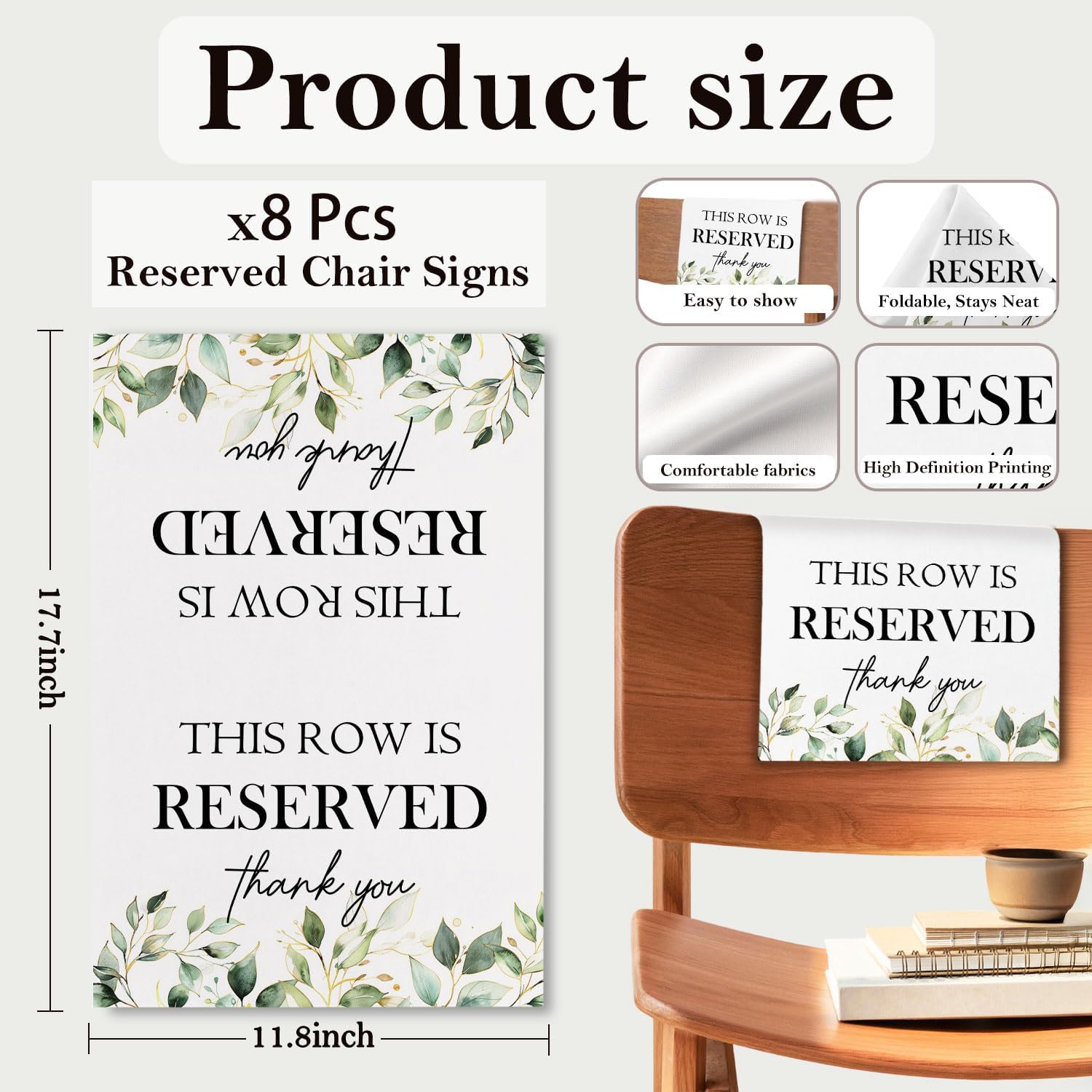 Reserved Seating Chair Signs, This Row Is Reserved Pew Cloths Seating Placeholder for Church Pews, Wedding Decorations for Reception Parties Celebrations Event Meetings (8 PCS, Green)