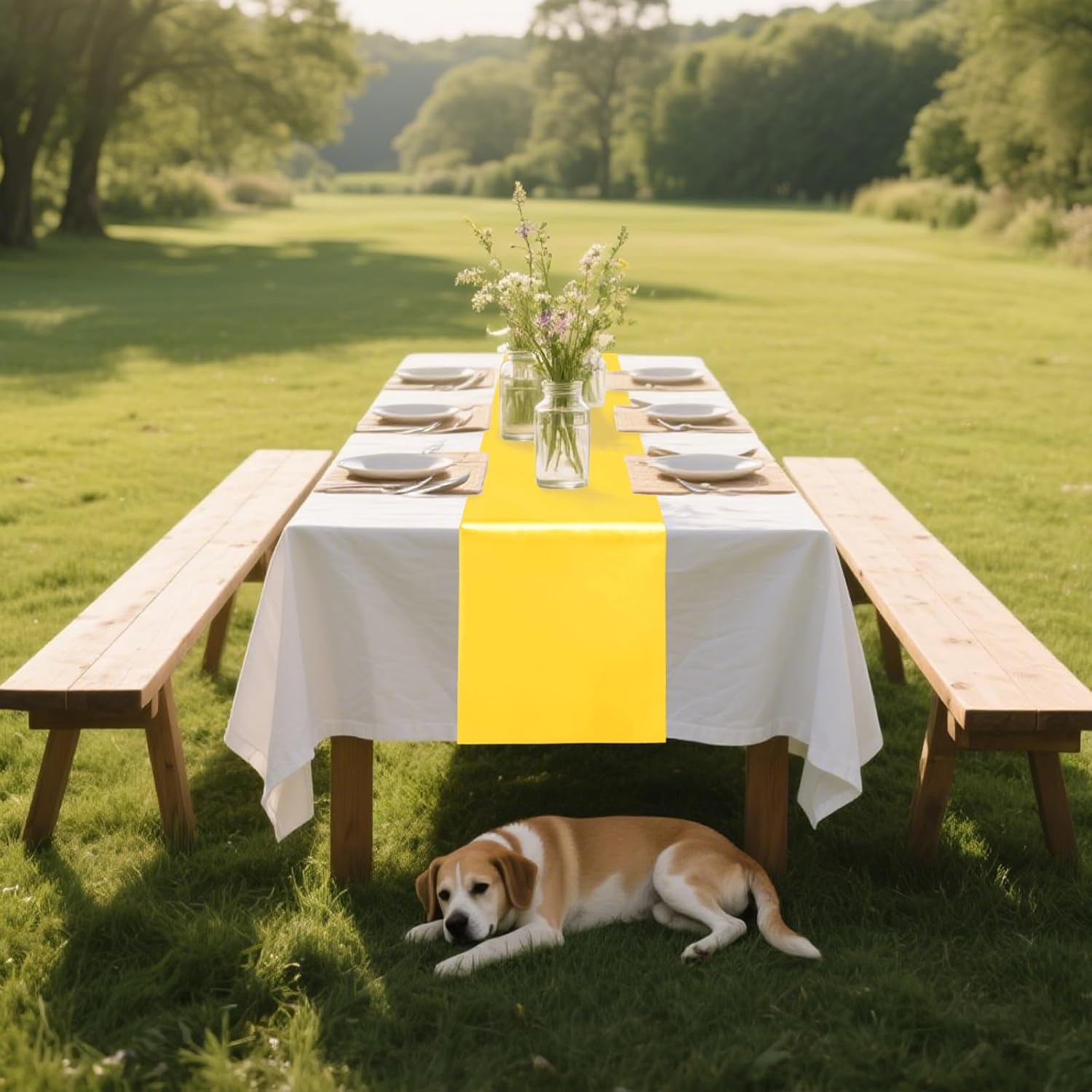 - Package Include: Each yellow satin table runner measures 12" x 108", total 10 packs, which is appropriate for rectangle or round tables that can seat 8-10 people.