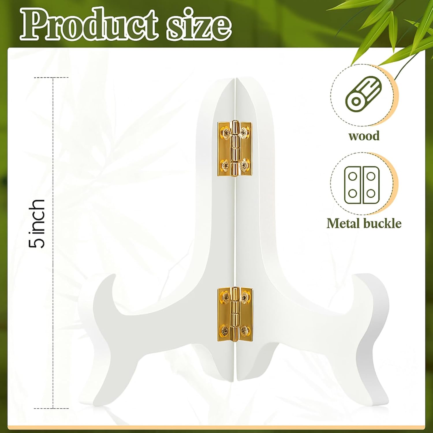 Tatuo 4 Packs Wooden Display Stand Decorative Plate Stands for Display Picture Frame Holder Easels(White,5 Inch)