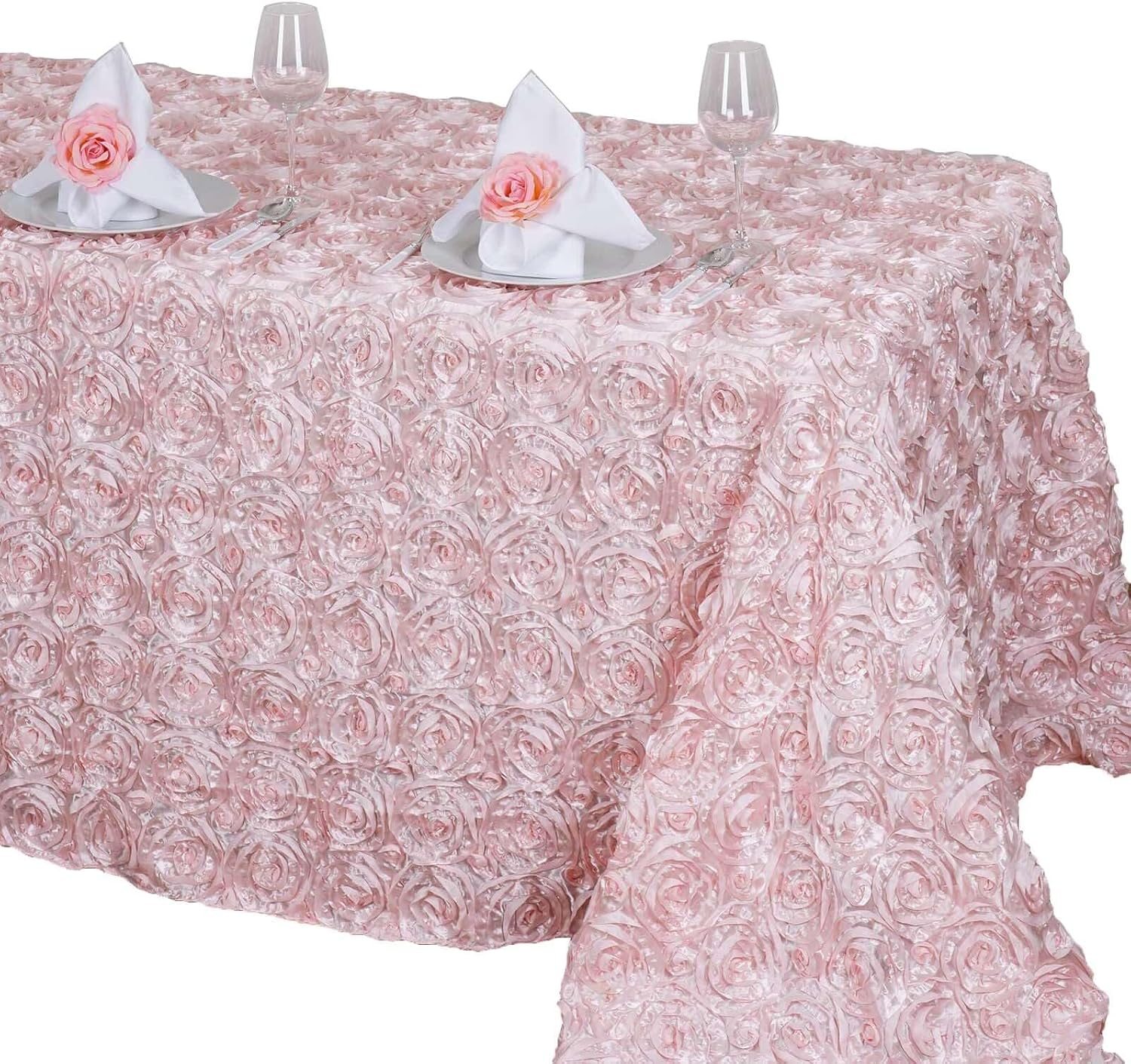 Efavormart 90"x132" Wholesale Rectangle Table Cover Blush Grandiose Rosette 3D Satin Tablecloth for Wedding Party Event