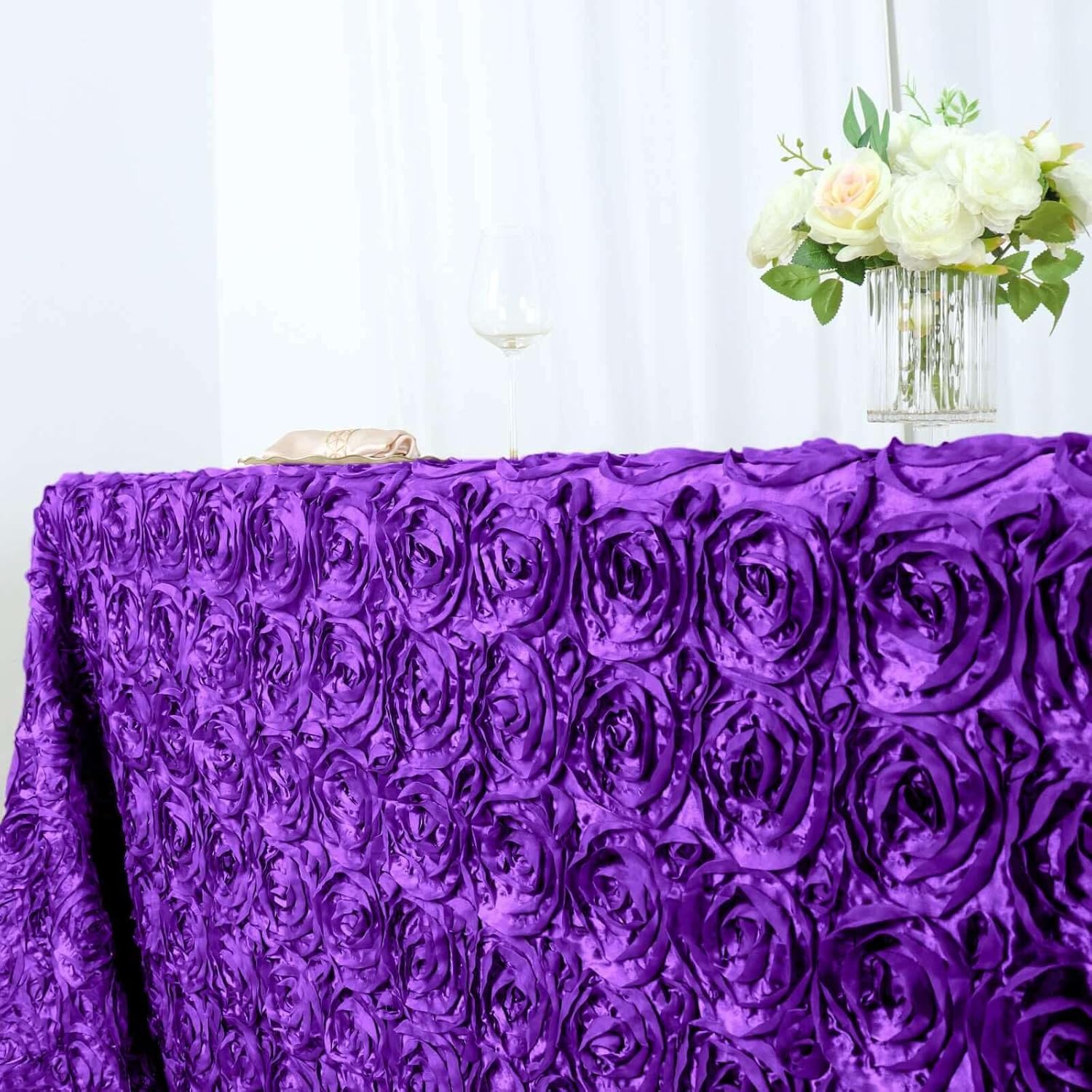 Efavormart 90"x156" Wholesale Rectangle Table Cover Purple Grandiose Rosette 3D Satin Tablecloth for Wedding Party Event Decoration