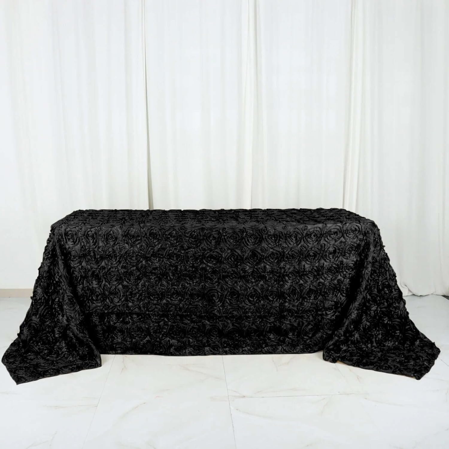 Efavormart 90"x132" Wholesale Rectangle Table Cover Black Grandiose Rosette 3D Satin Tablecloth for Wedding Party Event