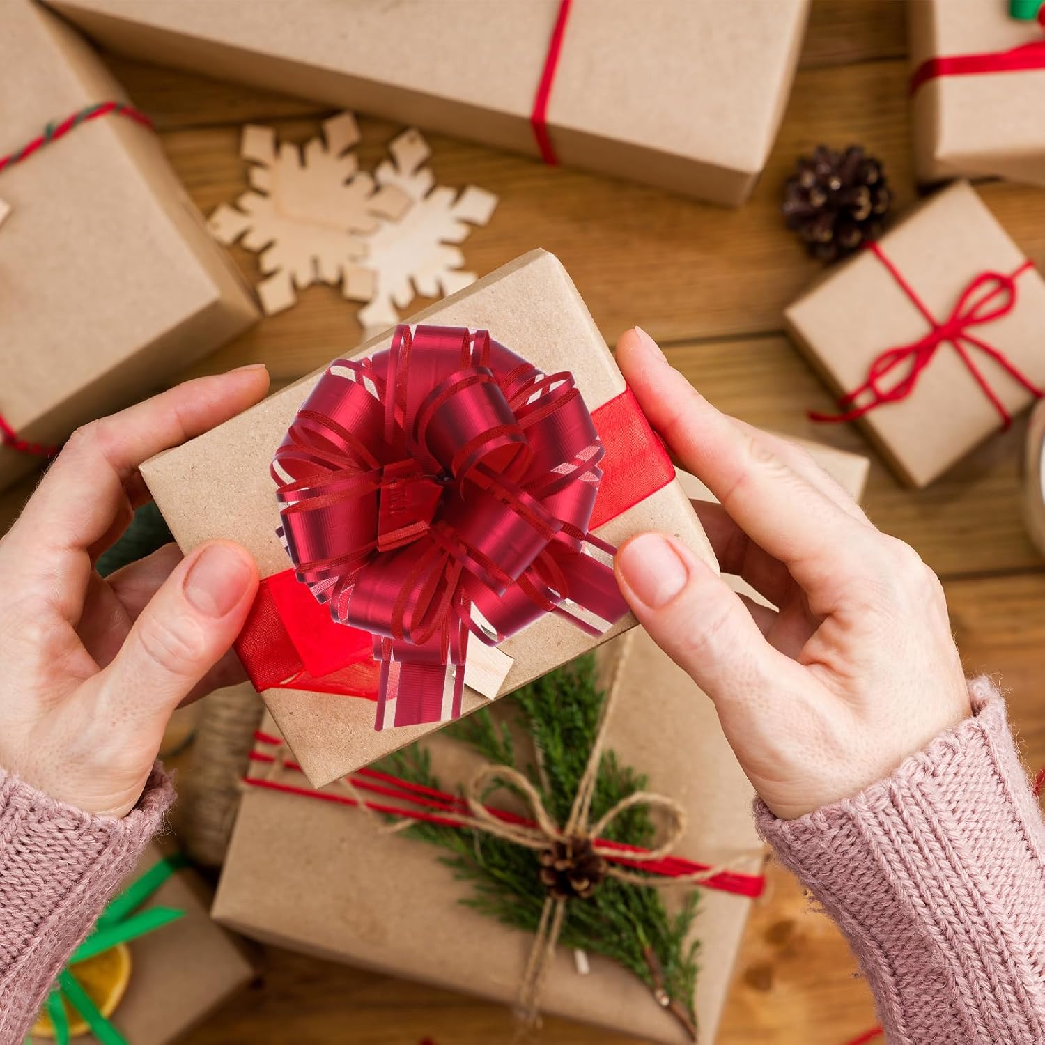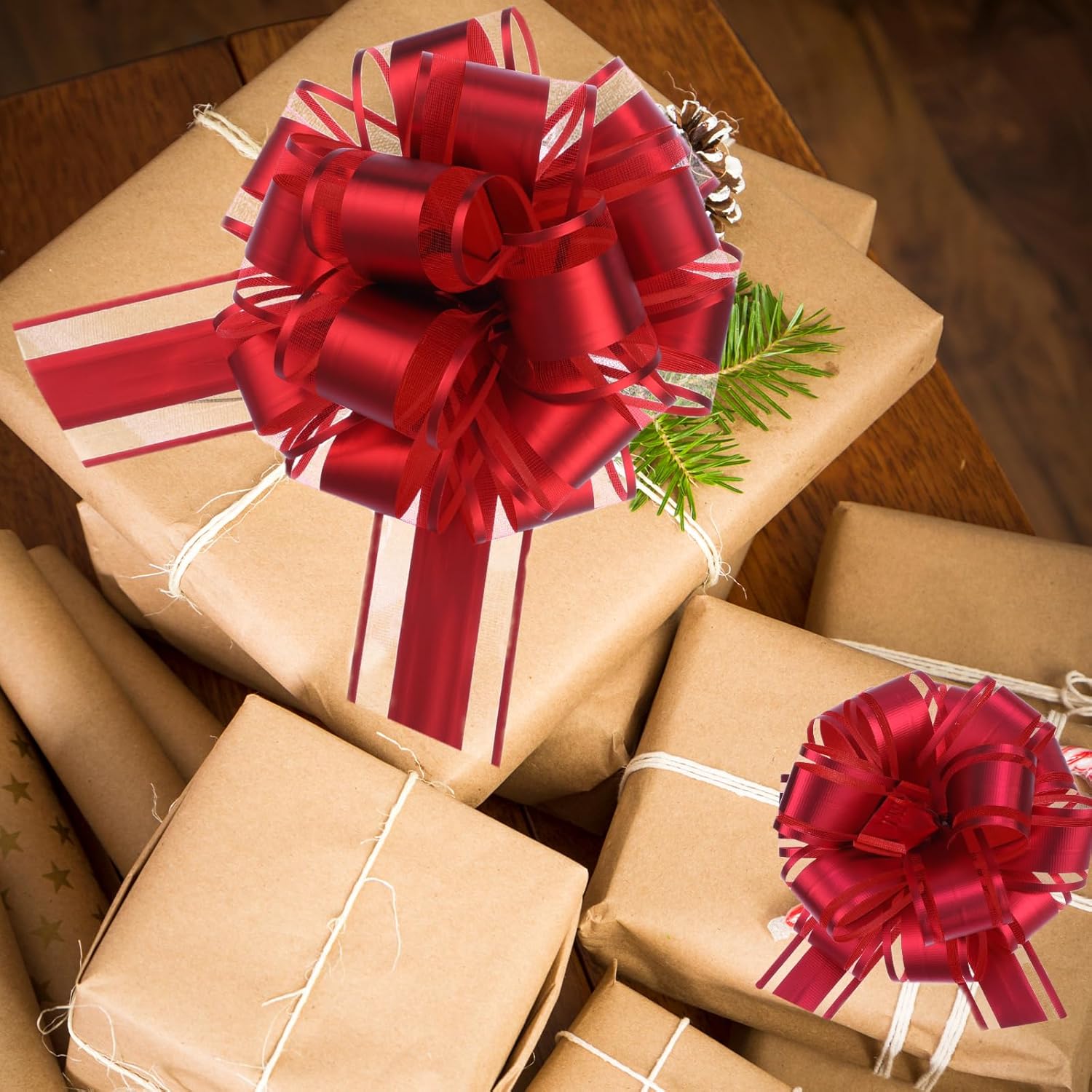 - Easy to install, just pull the 2 thin ribbons in reverse and the bow will automatically form. The Christmas gift bow is easy to install and fix, and the shape is not easy to spread. You can instantly get a beautiful ribbon flower, which can be used for gift packaging