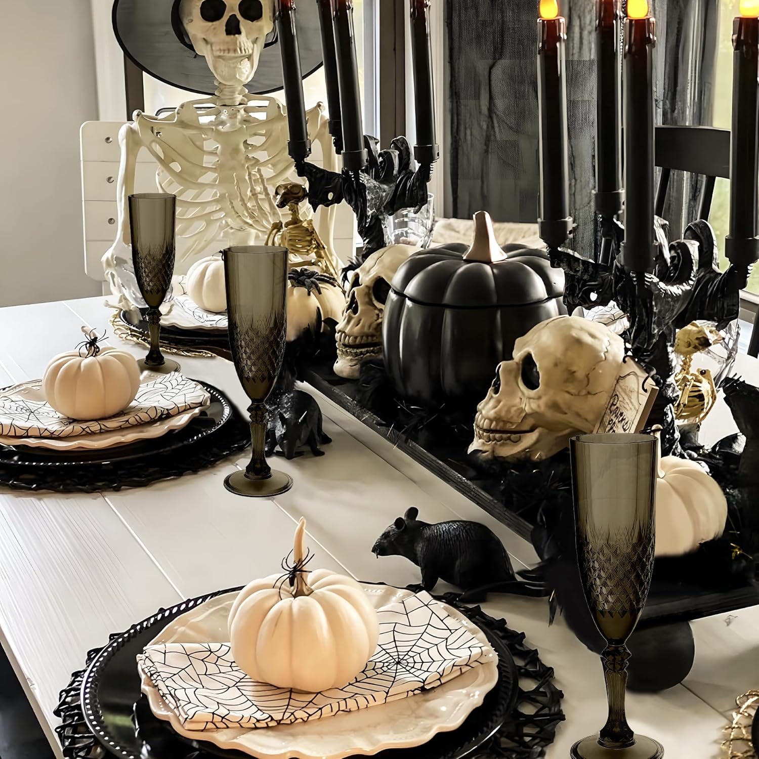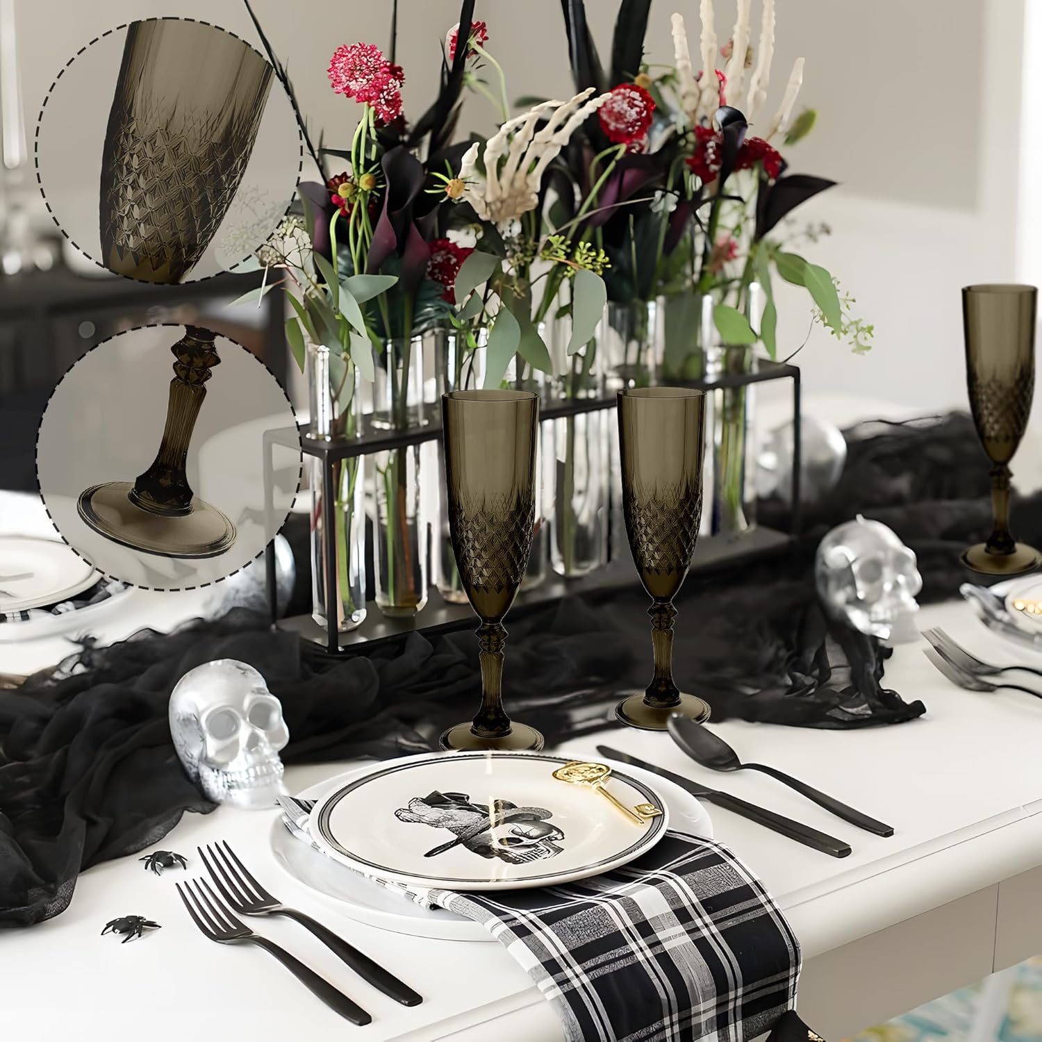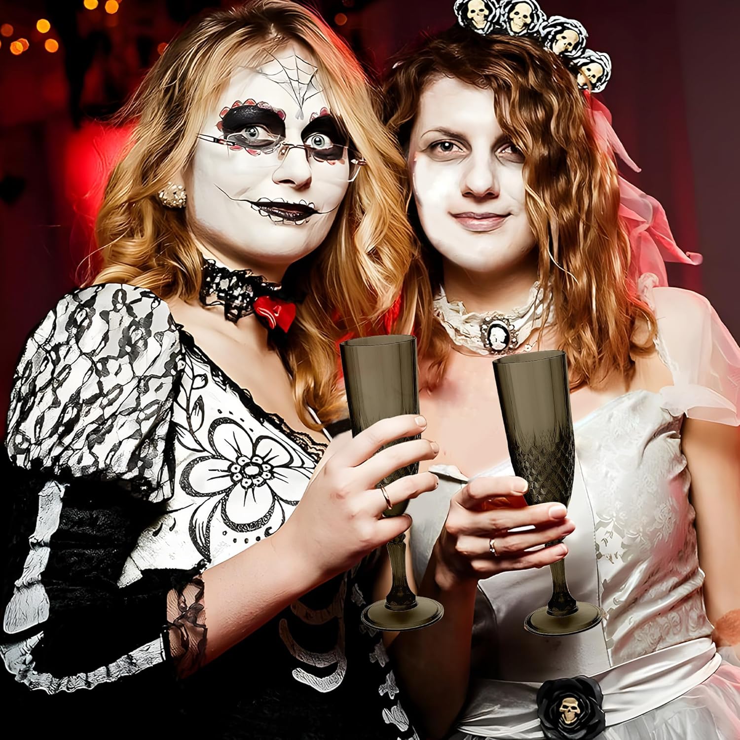 Plastic Champagne Flutes, 12PCS Black Wine Glasses Goblets Cups Shatterproof Reusable Flute for Halloween Weddings Bachelor Parties Toasting and Events(12, Black)
