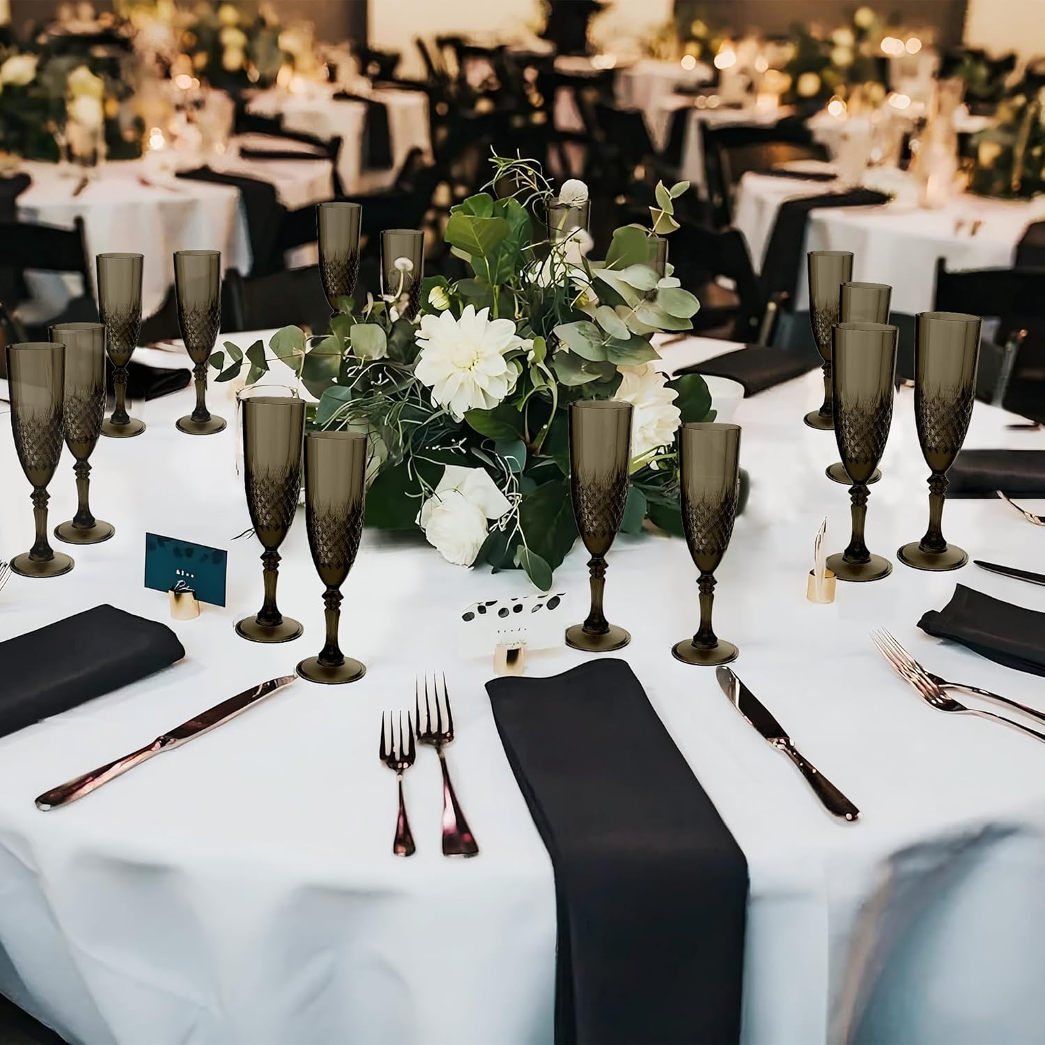 - Charming Set: Champagne flutes set include 12 retro-style black champagne plastic wine glasses, providing ample quantity to meet your daily use and replacement needs. A suitable champagne cup is the icing on the cake. Plastic wine glasses not only carry the wine, but also carries the laughter and blessings