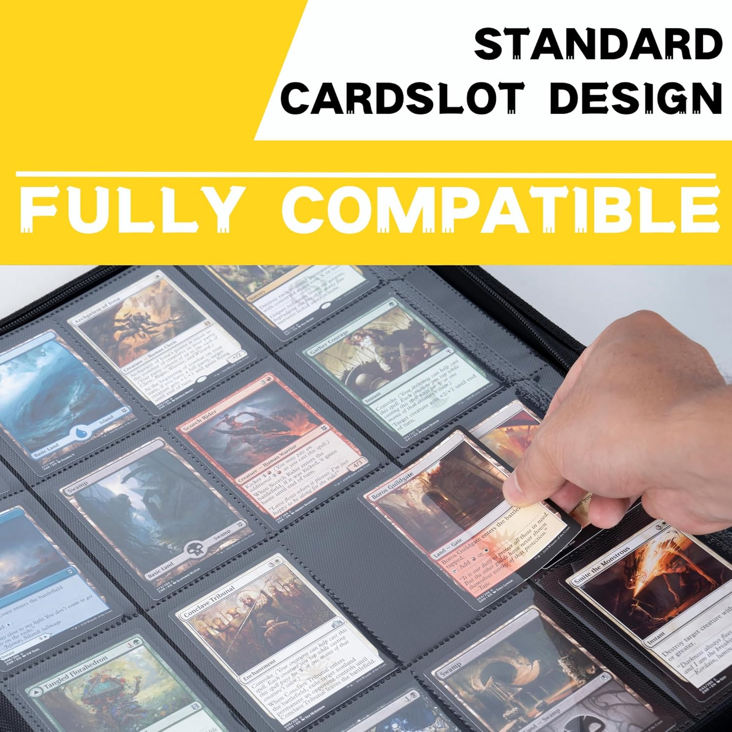 - ๐ฆ๐๐ฎ๐ป๐ฑ๐ฎ๐ฟ๐ฑ ๐๐ถ๐๐ฒ: Designed for standard-sized collector sleeves and binders, this trading card holder allows for easy organization and presentation of your collection's best pieces. No more struggling to fit oversized or undersized cards into holders that just aren't built for them!