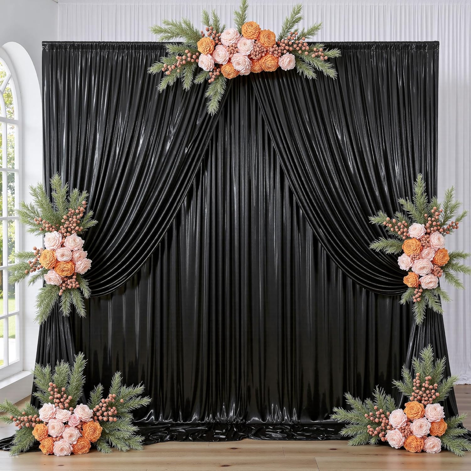 - For Kinds of Occasions Black Drapes for Backdrop - Our 10ft Black sequin glitter polyester drapes are perfect for kinds of occassions. Such as wedding party, baby showers, birthday parties, photo booth,anniversary,graduation, home decoration and more.