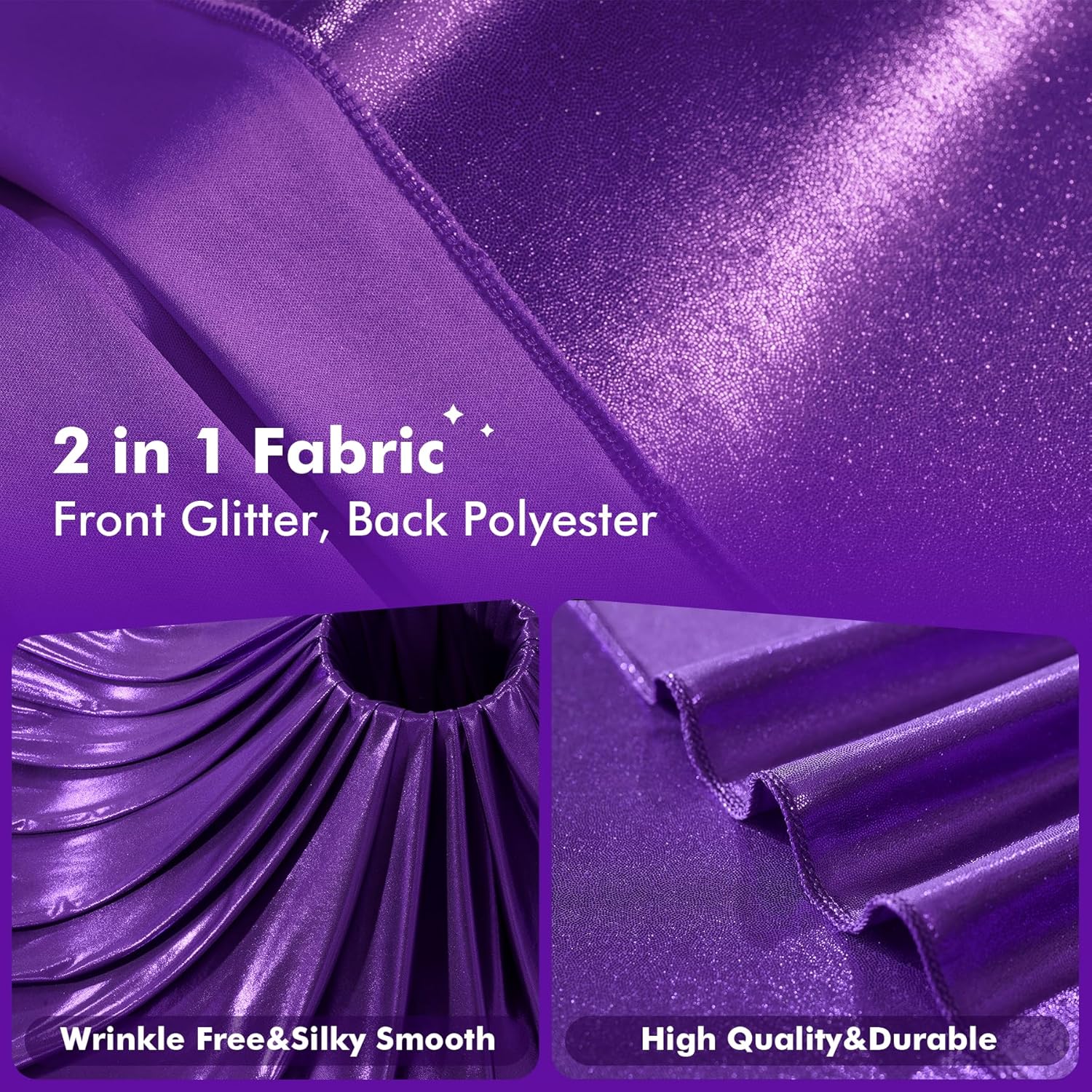 - For Kinds of Occasions - Our 10ft purple sequin glitter polyester drapes are perfect for kinds of occassions. Such as wedding party, baby showers, birthday parties, photo booth,anniversary,graduation, home decoration and more.