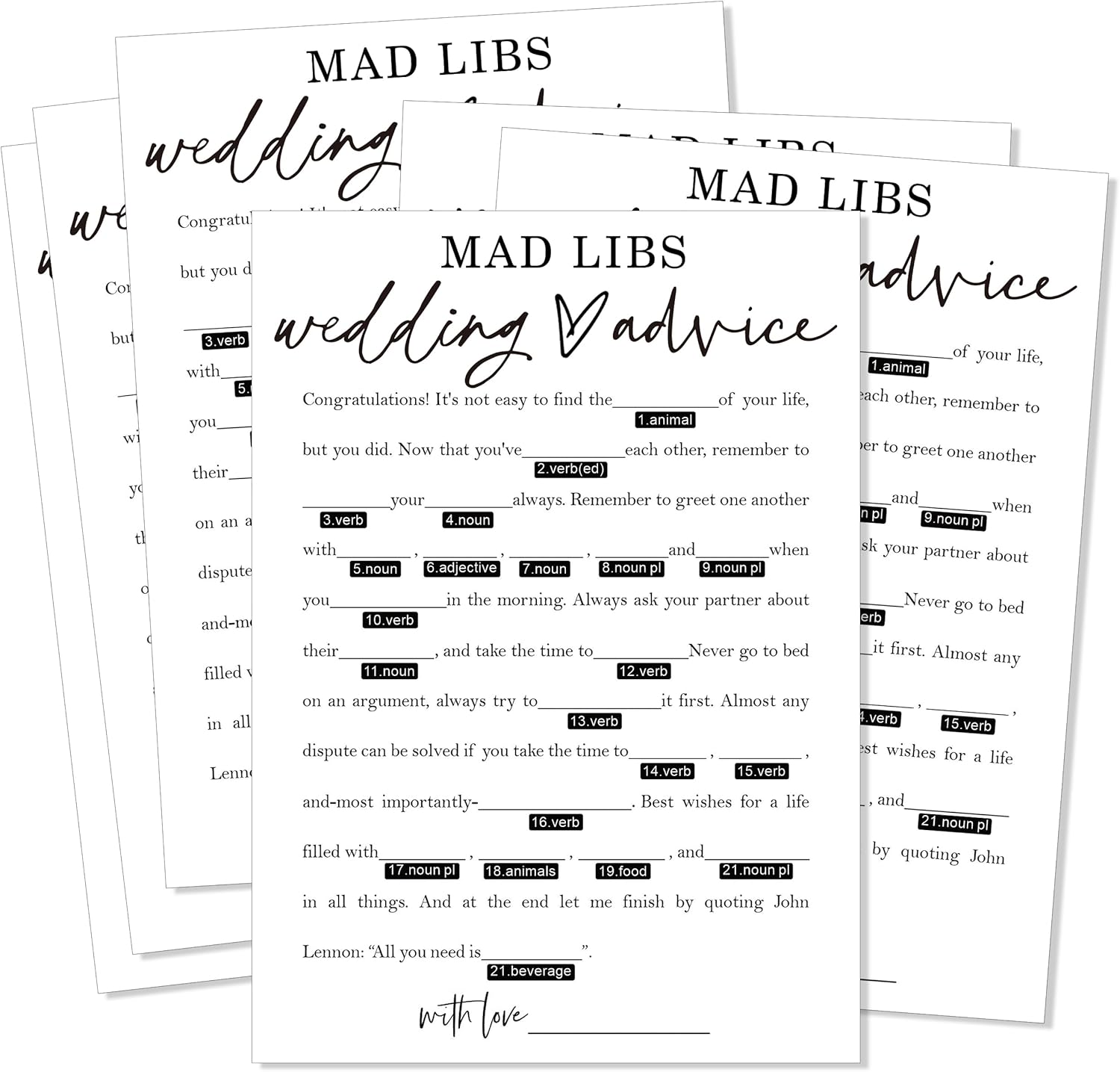 - [Fun Wedding Activity]: Enjoy light-hearted and entertaining bridal shower games that are perfect for rehearsal dinners, weddings, and engagement parties. The minimalist design fits seamlessly with any decor theme. Whether you're looking for advice for the bride cards or a unique wedding guest book idea, this product offers a versatile solution.