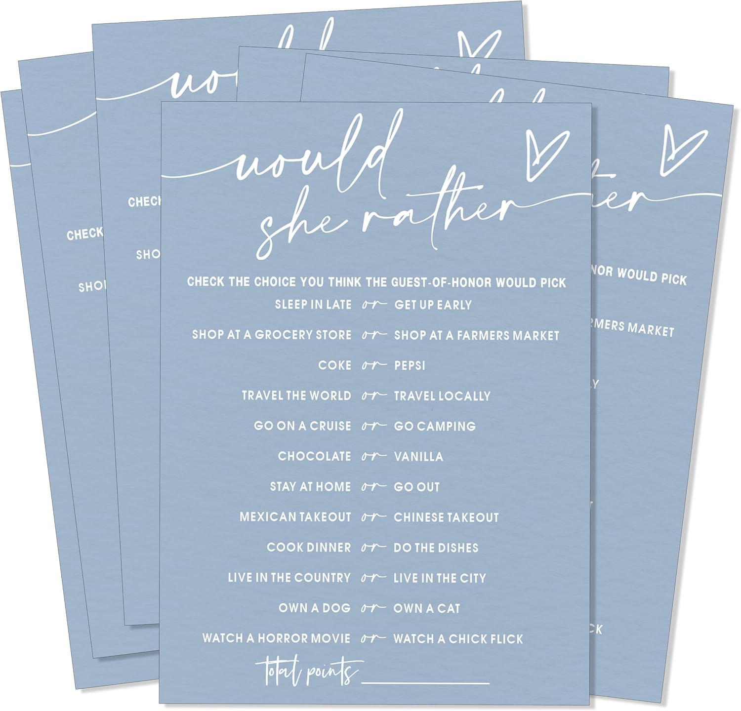 Fun Blue Bridal Shower Games Cards, Would She Rather Bridal Shower Game for 25 Guests Entertainment, Engagement Party Wedding Games for Guests, Minimalist Wedding Party Supplies - B11