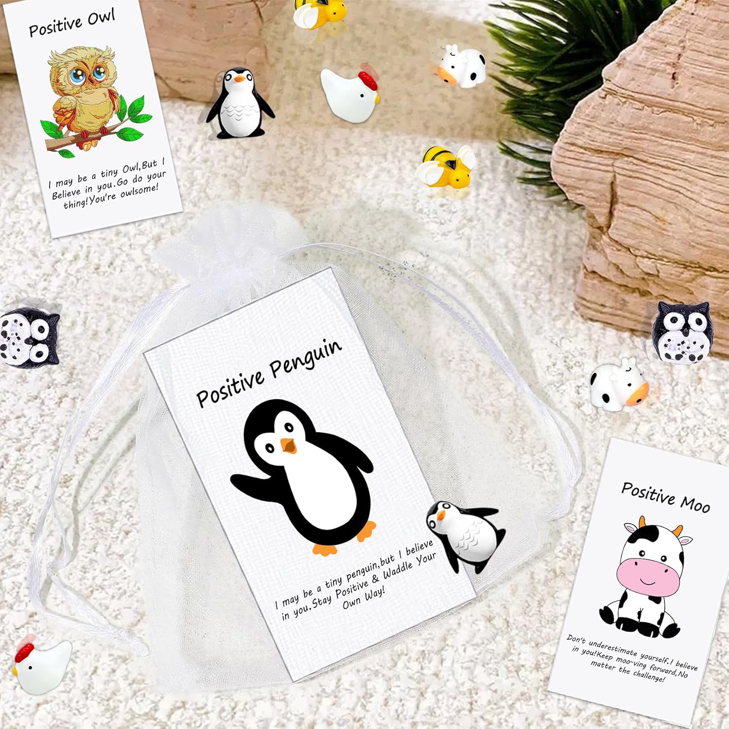 - ✅ Employee Thank You Gifts Bulk Set - We will provide you with a total of 50 pieces of employee appreciation gifts, including 50 positive resin animals, 50 cards and 50 organza bags;our group gifts for coworkers/back to school gifts for students are designed 5 different resin accessories with different cards,including owl, cow, bee, rooster, penguin with funny pun quotes,to express your gratitude and encouragement; Sufficient quantities can easily meet your gift-giving needs.