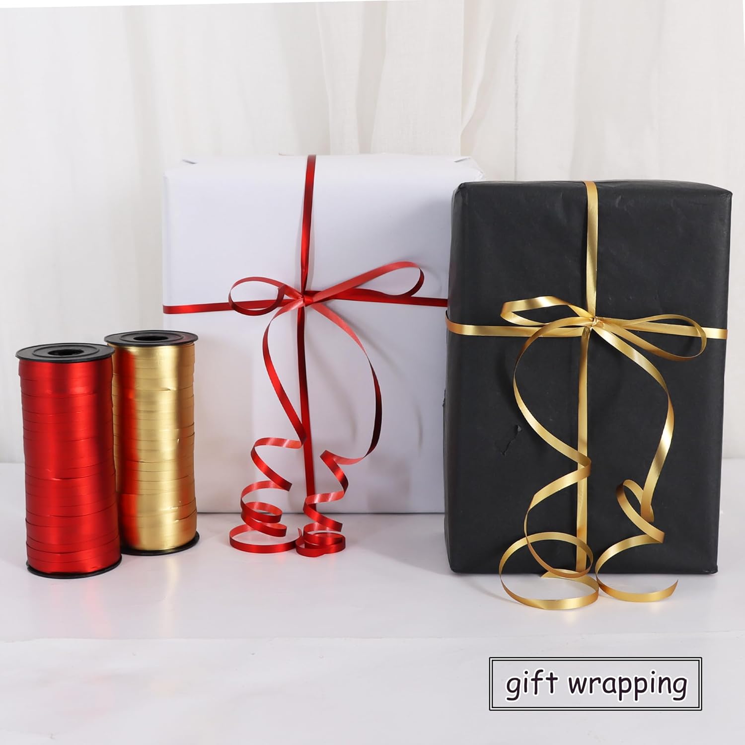 BEISHIDA Red and Gold Curling Ribbons Balloon String Ribbons - 2 Pack 100 Yards for Gift Warppping Birthday Christmas Party Decorations