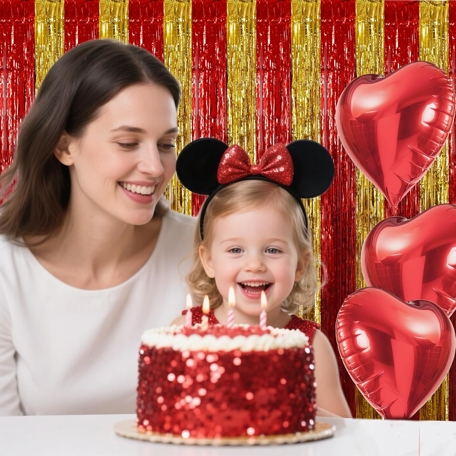 BEISHIDA Red Gold Door Streamers Backdrop Foil Fringe Tinsel Party Streamers Curtains Photo Backdrop for Birthday Graduation Christians Party Decoations
