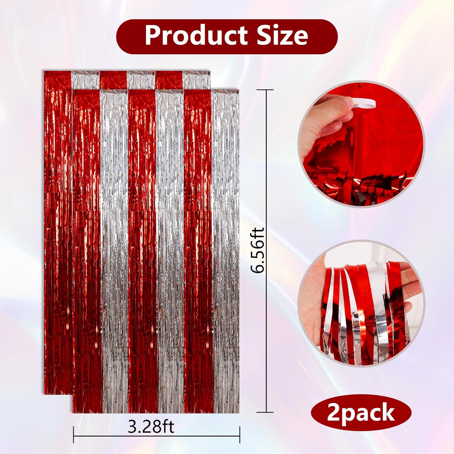 - Dimension: these foil fringe backdrop curtains are 3.28 x 6.56 ft in size; They are cuttable, you can adjust their size in your own way.