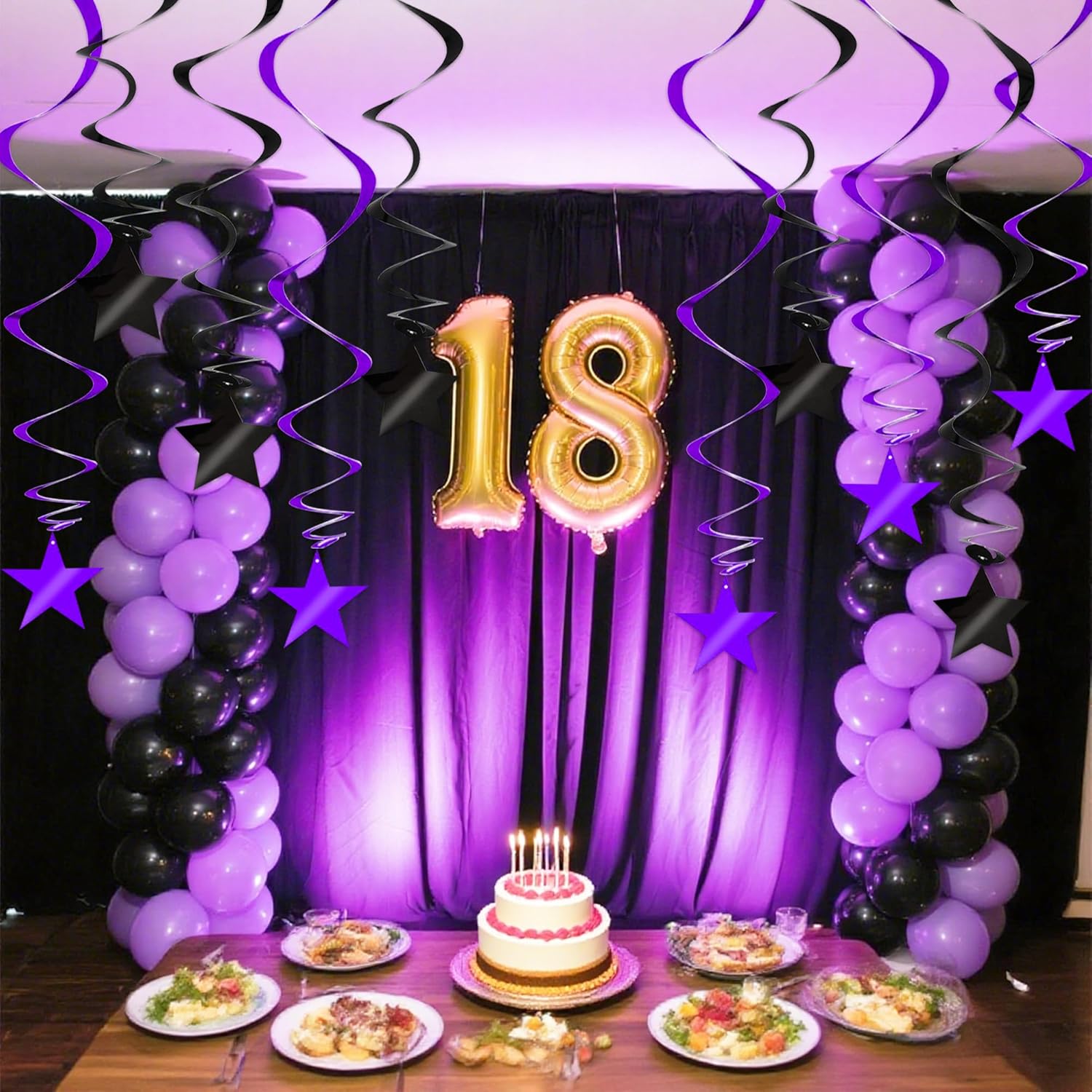 BEISHIDA Black Purple Star Halloween Hanging Swirl Decorations, Halloween Party Supplies for Horror Party Wedding Baby Shower Birthday Decorations,Pack of 15