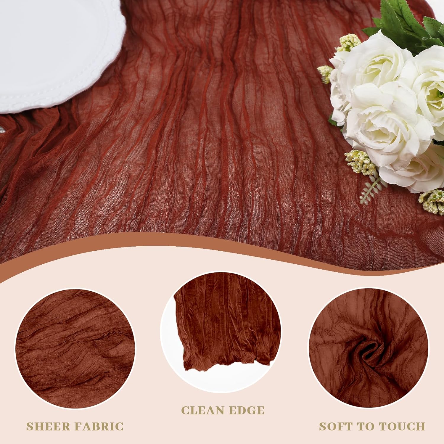 Le courant 12pcs 10Ft Cheesecloth Table Runner, Rustic Boho Gauze Cheese Cloth Runner Table Runner for Weddings Bridal Baby Shower Birthday Holiday Parties Home Decor, Terracotta