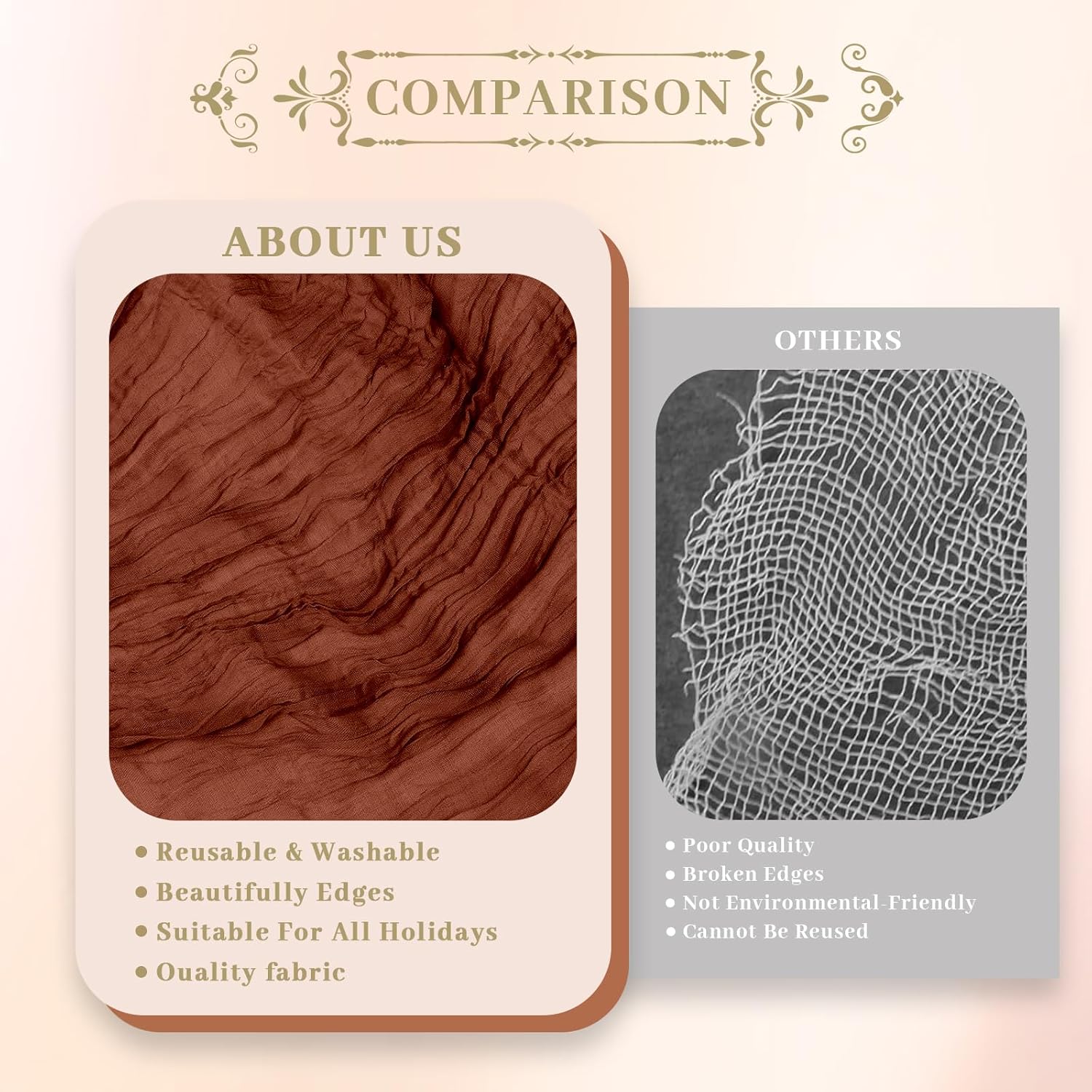 - 【Superior Quality】Crafted from cheesecloth fabric with manual dying process. The edges are thoughtfully stitched to prevent fraying. This top-notch material is incredibly soft, breathable, and long-lasting, bringing a delightful vintage, rustic, and aesthetic charm to your table.