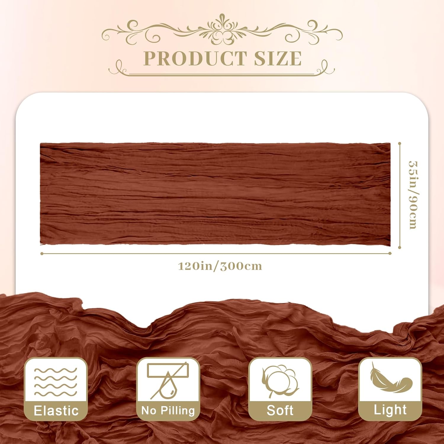Le courant 6pcs 10Ft Cheesecloth Table Runner, Rustic Boho Gauze Cheese Cloth Runner Table Runner for Weddings Bridal Baby Shower Birthday Holiday Parties Home Decor, Terracotta