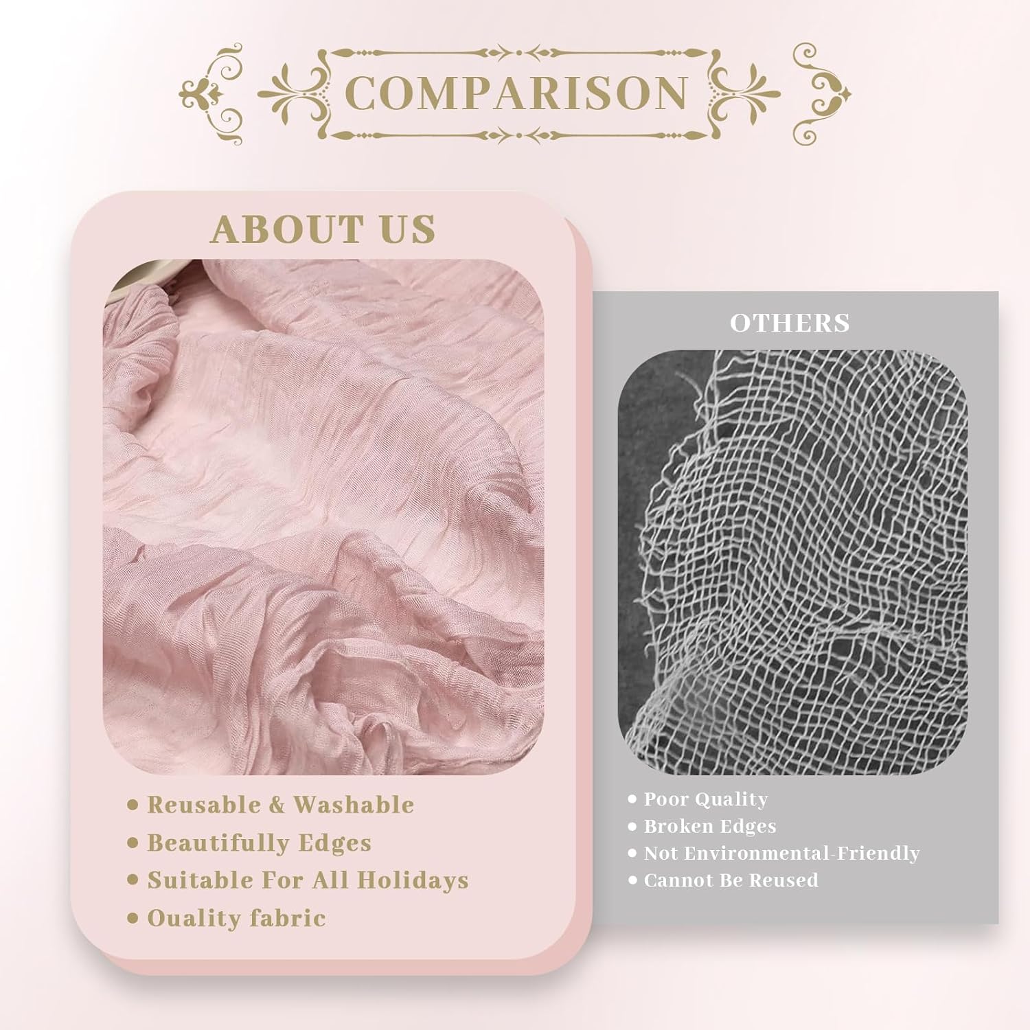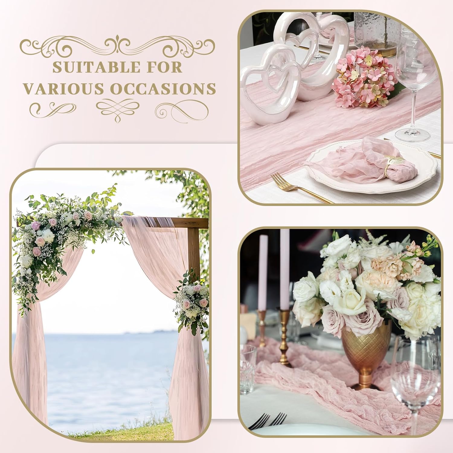 Le courant 12pcs 10Ft Cheesecloth Table Runner, Rustic Boho Gauze Cheese Cloth Runner Table Runner for Weddings Bridal Baby Shower Birthday Holiday Parties Home Decor, Dusty Pink