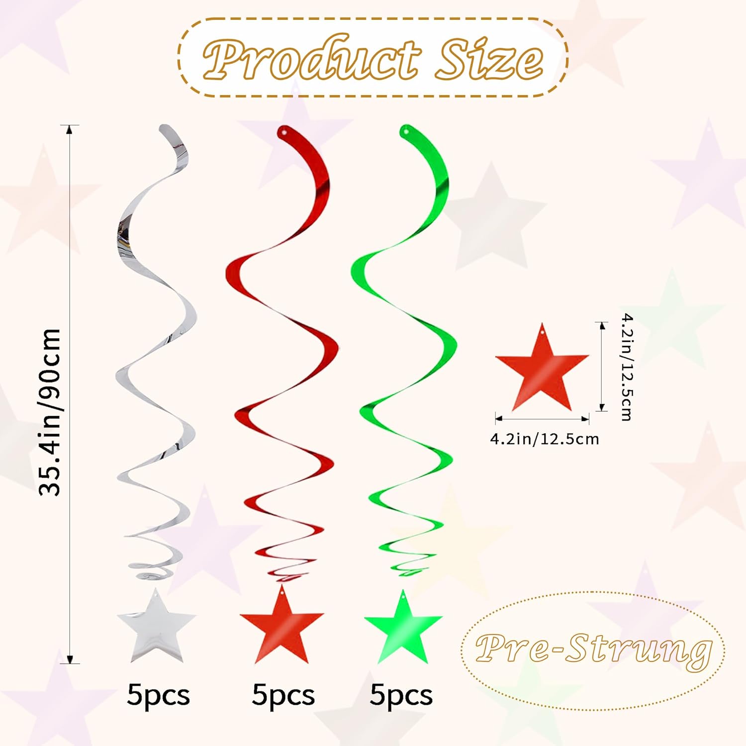 - 【Package include】A total of 15 pcs hanging swirl decorations, including 15 double swirls and 15 swirls with PVC star. There are 15 strings in total, each of which is connected with a double swirls and a PVC star. Flexible swirls, hanging length can extend to approx 36"/91cm long.