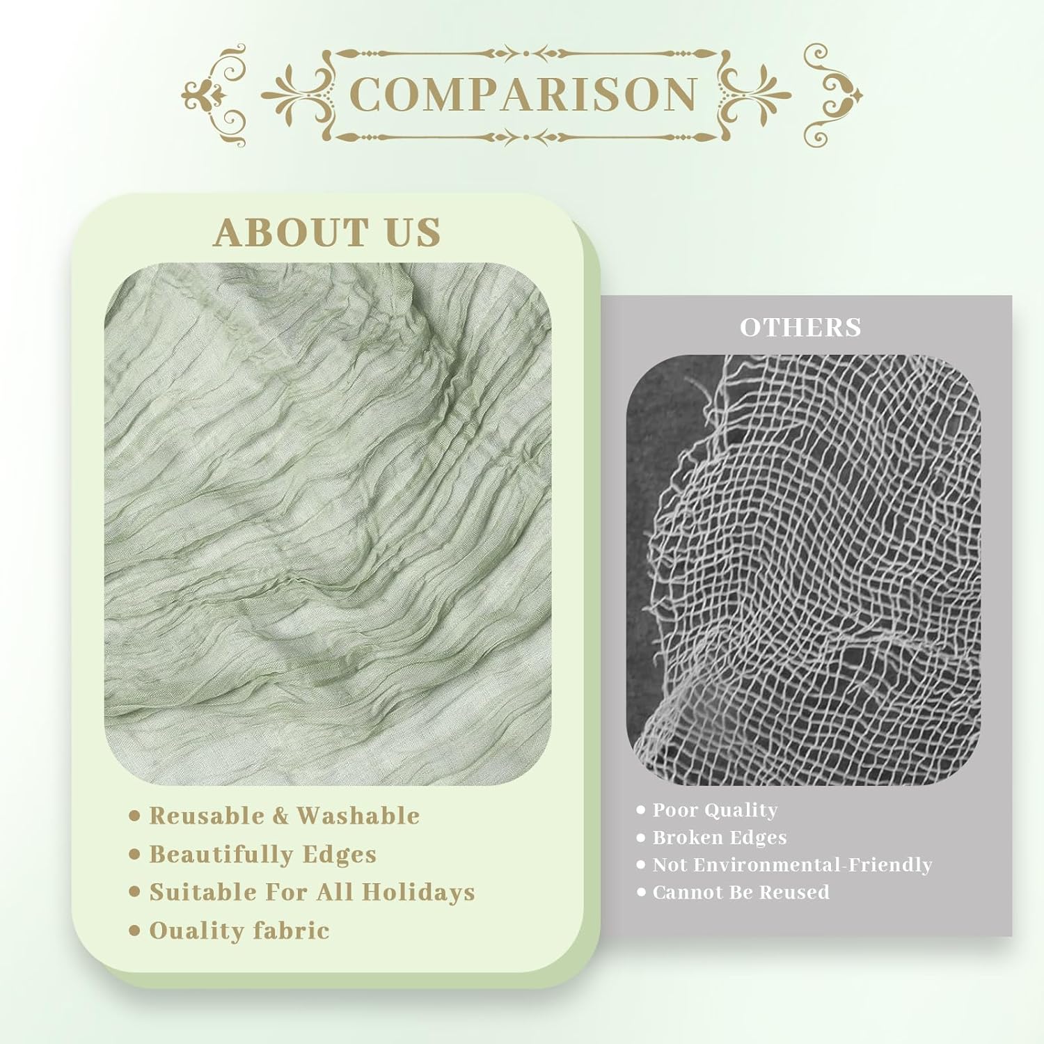 Le courant 12pcs 10Ft Cheesecloth Table Runner, Rustic Boho Gauze Cheese Cloth Runner Table Runner for Weddings Bridal Baby Shower Birthday Holiday Parties Home Decor, Sage Green