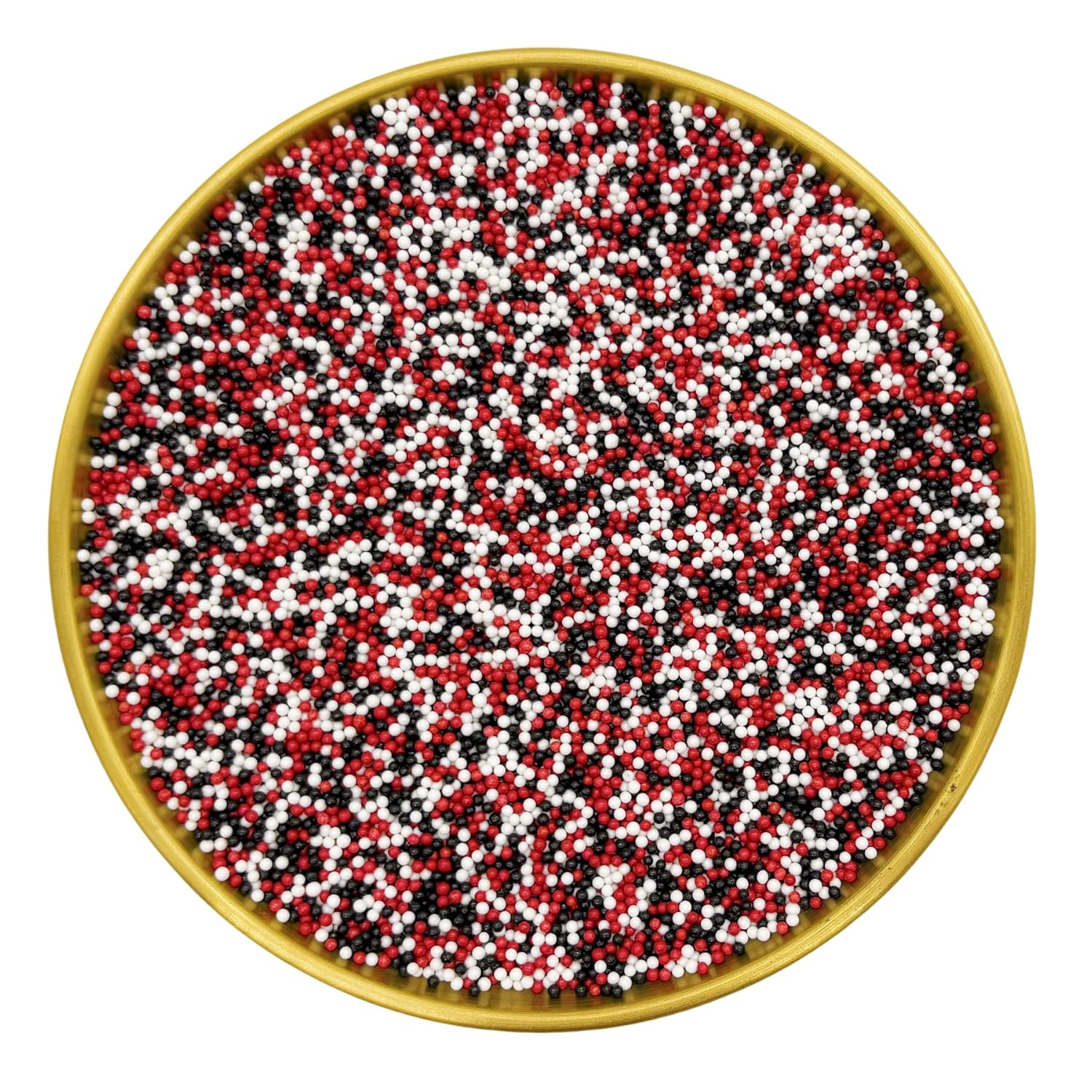 Dynastang 2mm Red & Black & White Pearls Sprinkles Edible Pearls Cake Decorating Stars Cake Decorations Cupcake Toppers Cookie Decorating Perfect for Cakes, Cupcakes, Desserts Toppings 3OZ