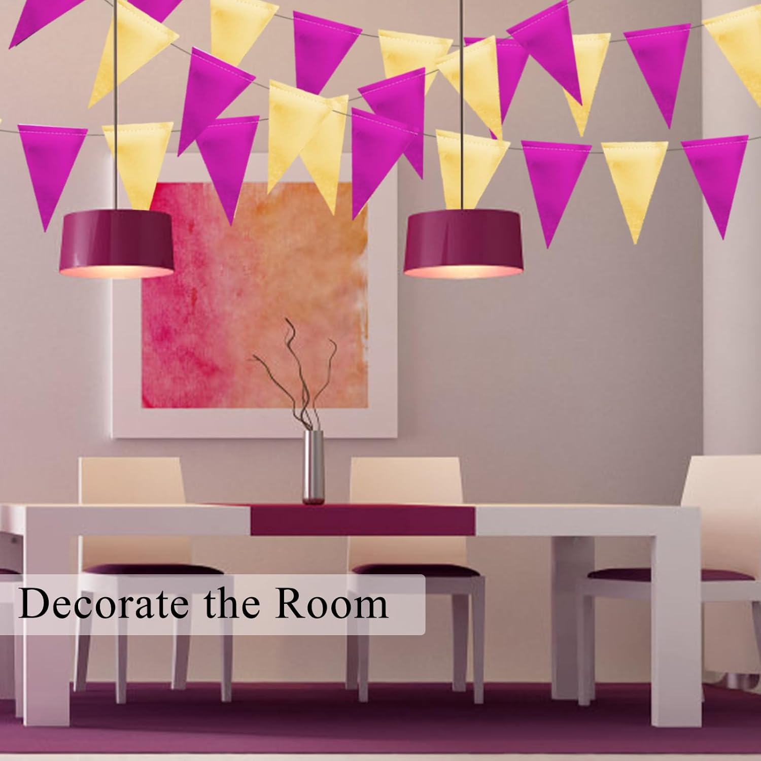 MerryNine Triangle Flag Bunting Banner, 3 Pack Vintage Style Pennant Banner for Wedding, Baby Shower, Event & Party Supplies 45pcs Flags (Purple Gold)