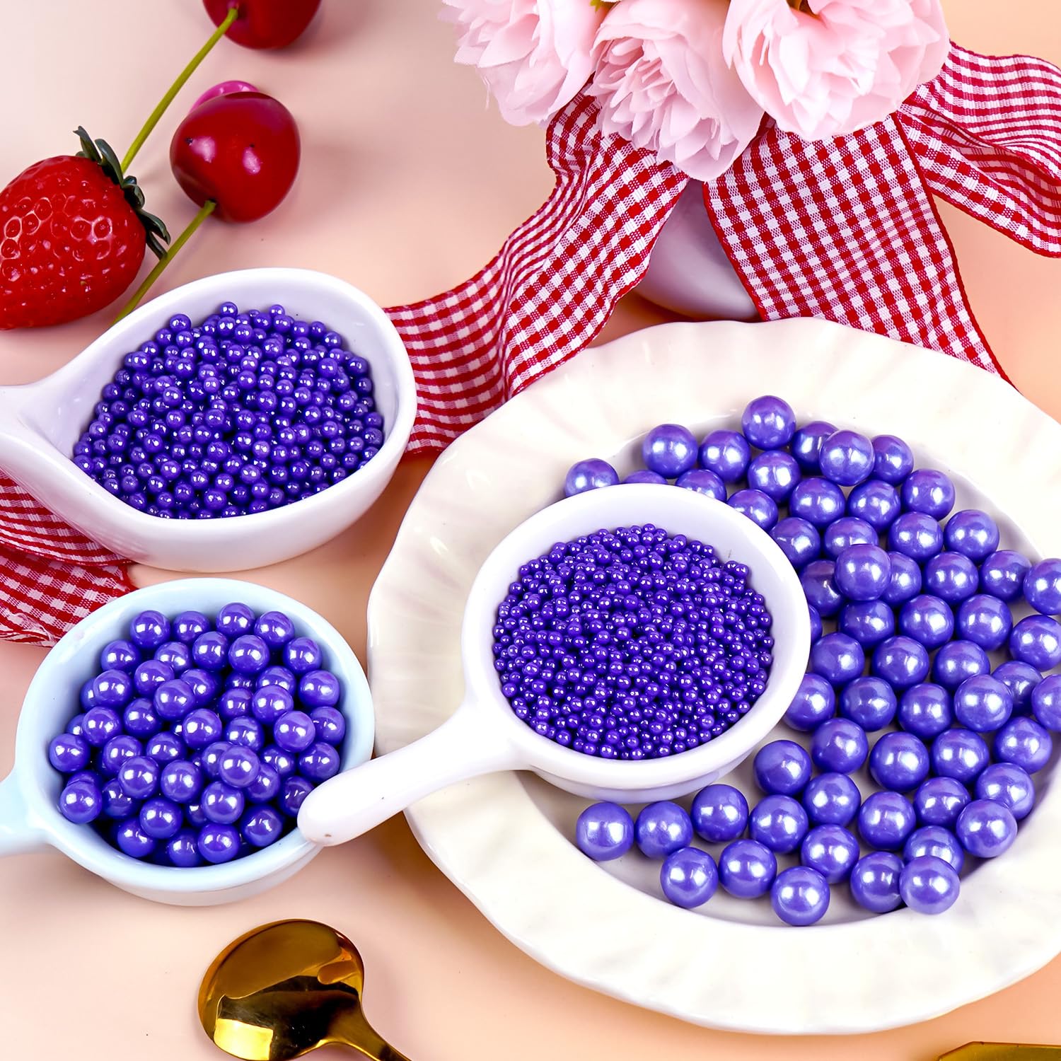 - Mix size Pearl Ball Sprinkles can meet the needs of decorative production of a variety of bakery products, with a high cost-effective. Pearl Sugar Sprinkles suitable for cakes, cookies, Ice cream, Cupcakes other Foods. 1 bottle of sugar sprinkles makes 3-5 cupcakes or one 3-inch diameter cake. After baking, you can place pearl sprinkles on top of the cake as decoration.