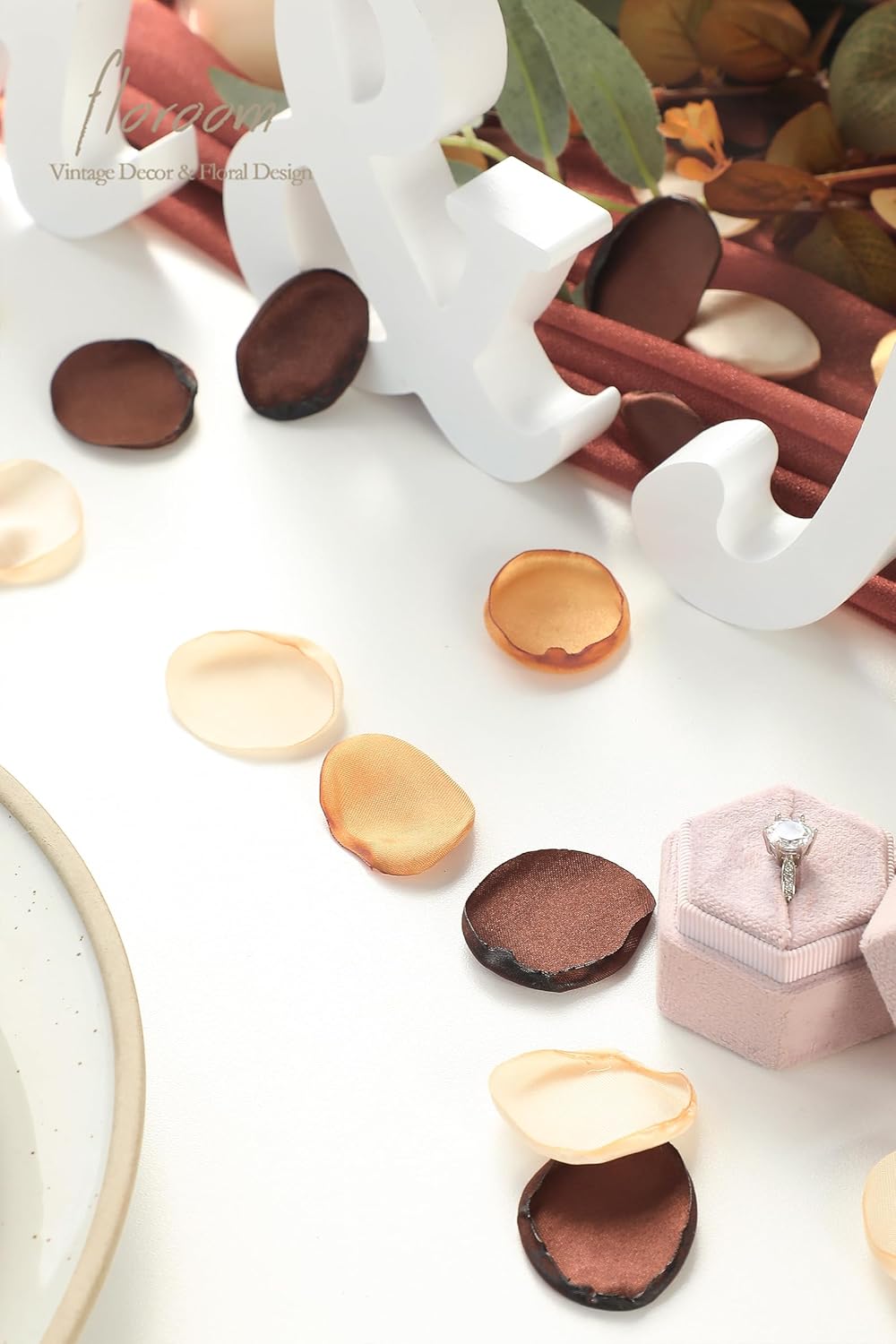 - ❤️Color Details: Brown/ Caramel/ Cream. This color combo is designed by Floroom Studio. We also offer solid color petal packs for free combination, enabling you to craft specific accessories matching your wedding decoration.