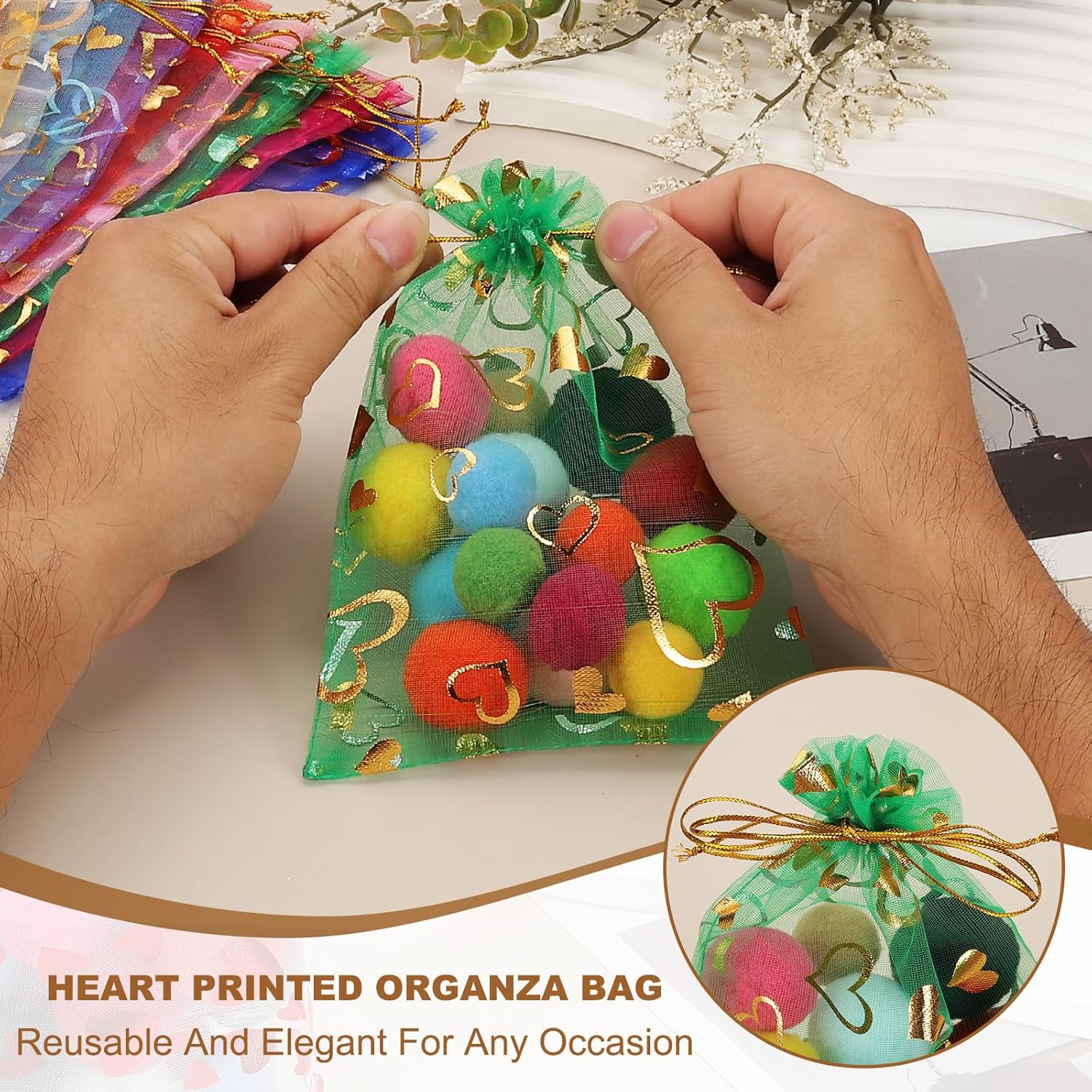 - Application: Sheer Heart Printed Organza Bags add a touch of charm to any gift or favor. Perfect for weddings, parties, company, church, hotels, stores to wrap favor gifts, and retail displays. Pack presents for Valentine's Day, Mother's Day, festivals, and various gifts