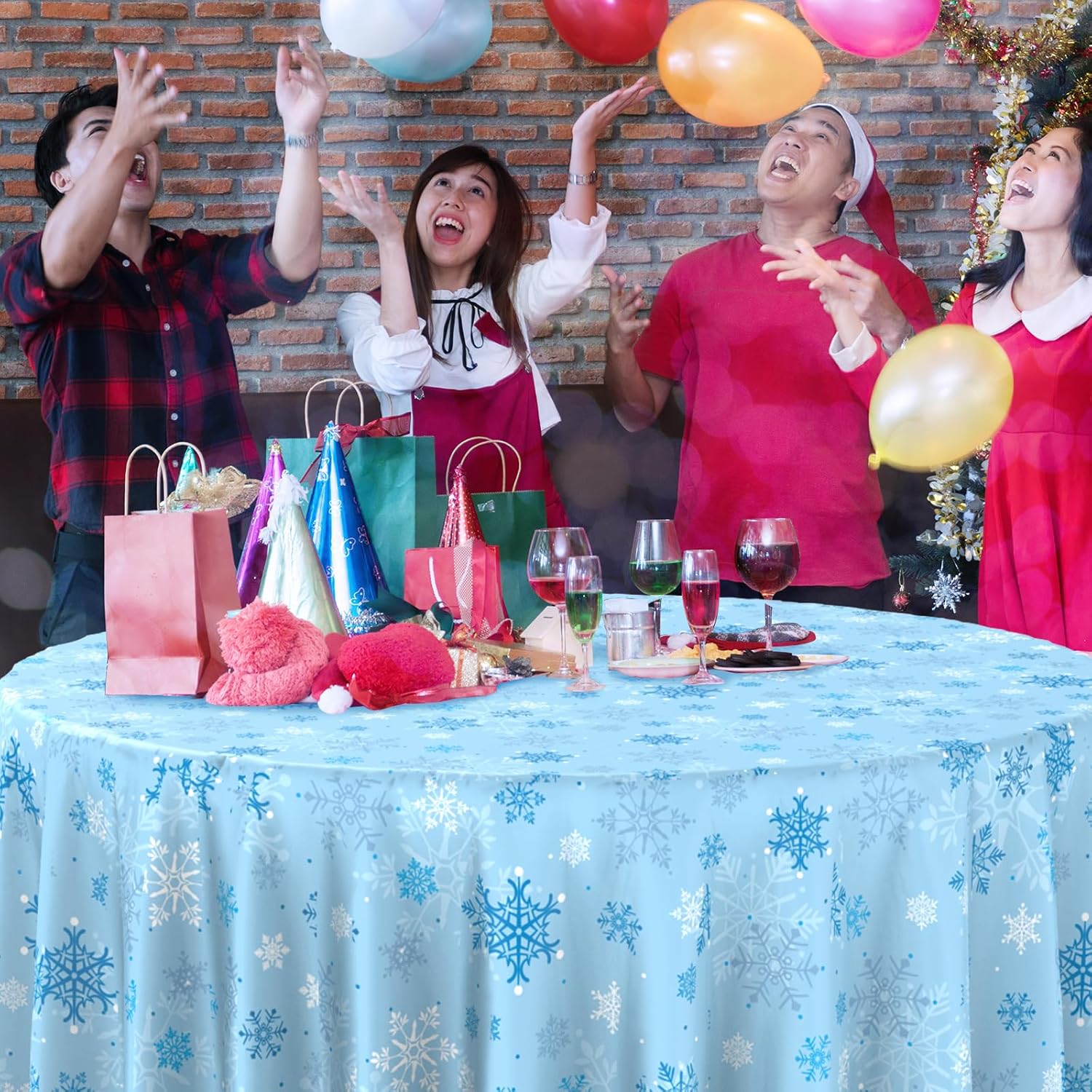 - Extra large size: these white light blue snowflake Christmas party tablecloth measures approx. 84 inch, which fits for various-sized tables that can accommodate 8-10 people, It’s large enough for your to hold a winter holiday and Christmas theme party with your family and friends to share happiness
