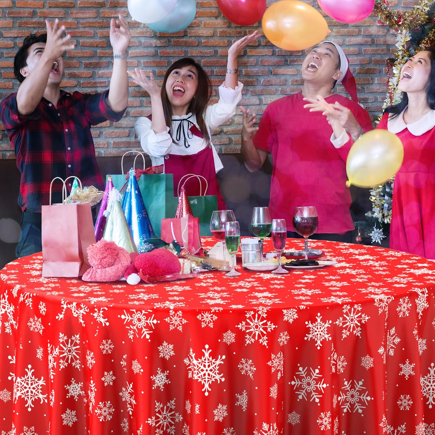 - Extra large size: these red snowflake Christmas party tablecloth measures approx. 84 inch, which fits for various-sized tables that can accommodate 8-10 people, It’s large enough for your to hold a winter holiday and Christmas theme party with your family and friends to share happiness