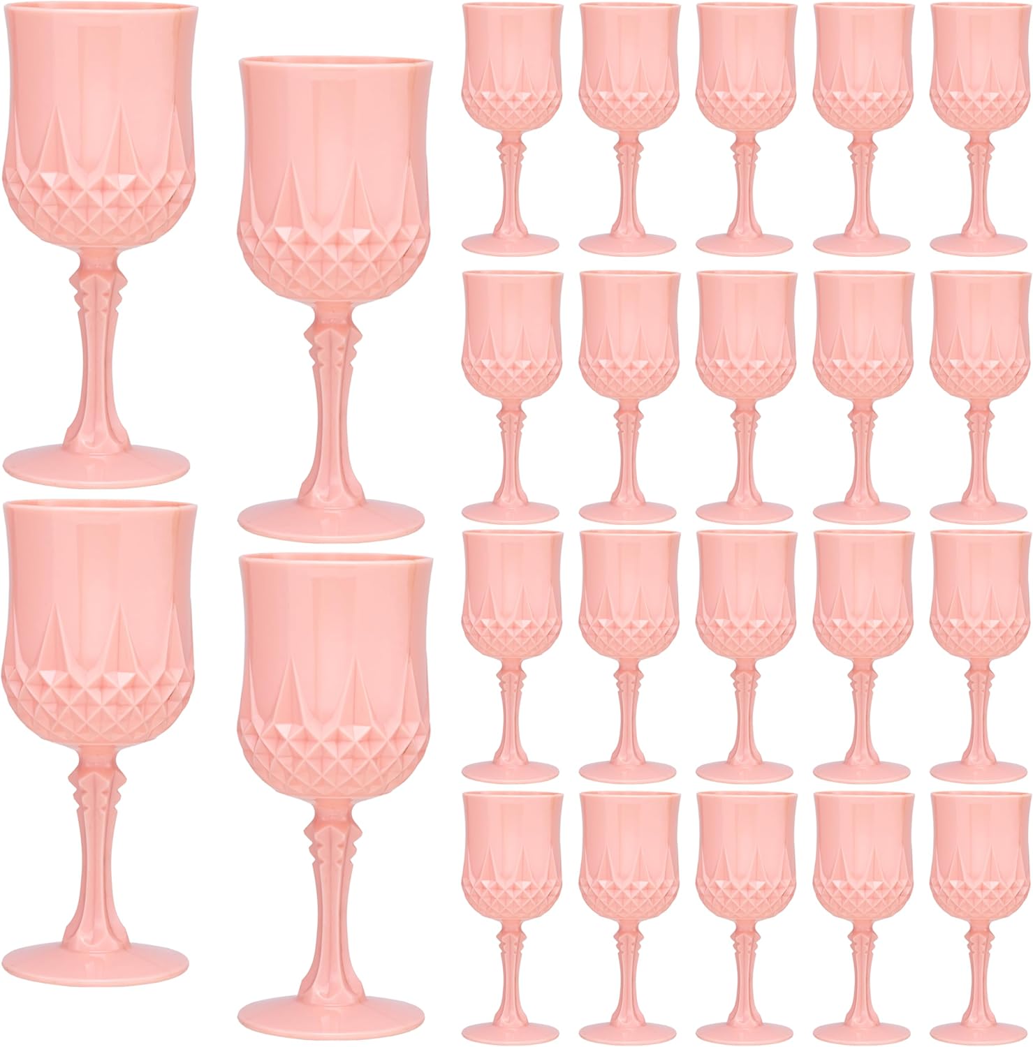 Plastic Vintage Wine Glasses 7OZ Plastic Goblets Vintage Drinking Glasses 24PCS Retro Wedding Glassware Water Goblets Reusable Drinking Cups for Party,Reception,Celebration,Bar,Whiskey(Light Pink)