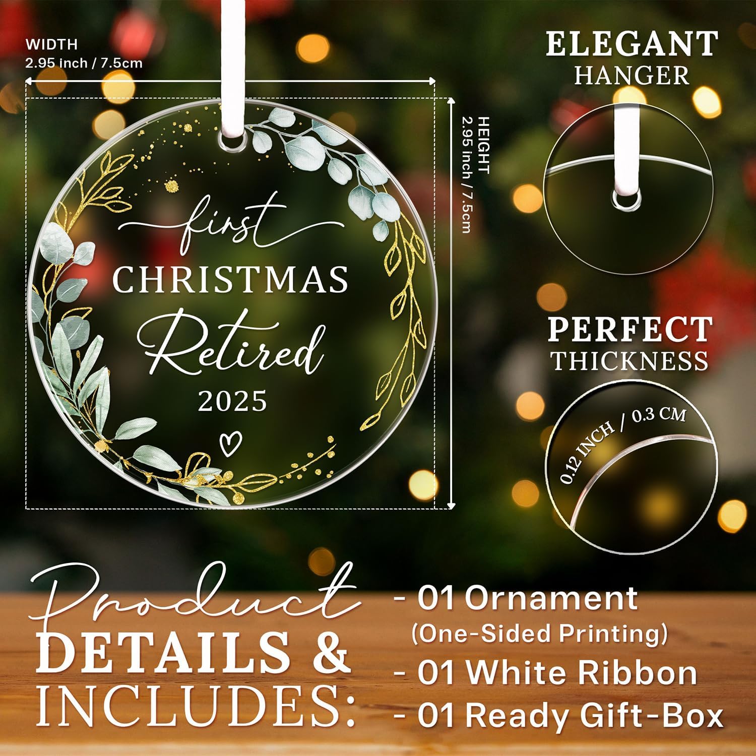 - FIRST CHRISTMAS RETIRED ORNAMENT 2025: Celebrate the retiree's well-deserved retirement during the festive Christmas season with a heartfelt and thoughtful gift. Suitable for retirement ornament, retirement ornament women 2025, retired ornament 2025, retired gifts for women, gift for coworker leaving for new job, retired gifts for men