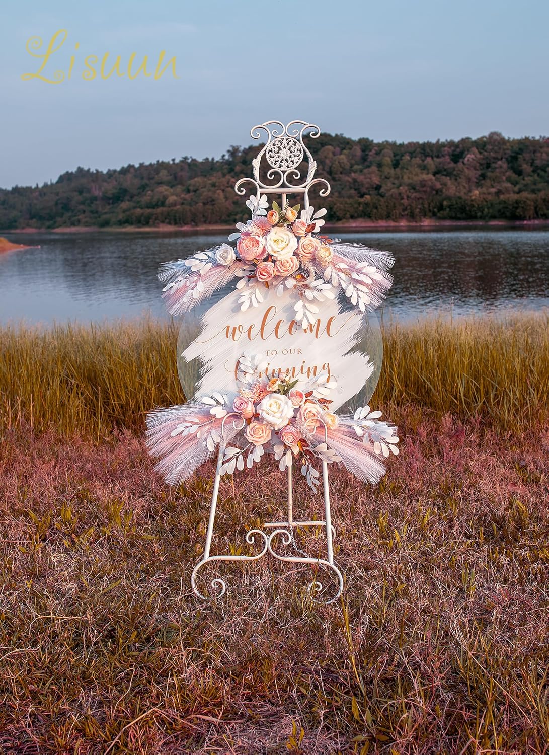 - Standard Size:The large flower swag design straightens measures 27.5" long x 11.8" wide(70*30cm), small flower tie measures 27.5" long x 11.8" wide(70*30cm).Exclusively made for reception backdrop and welcome ceremony sign.