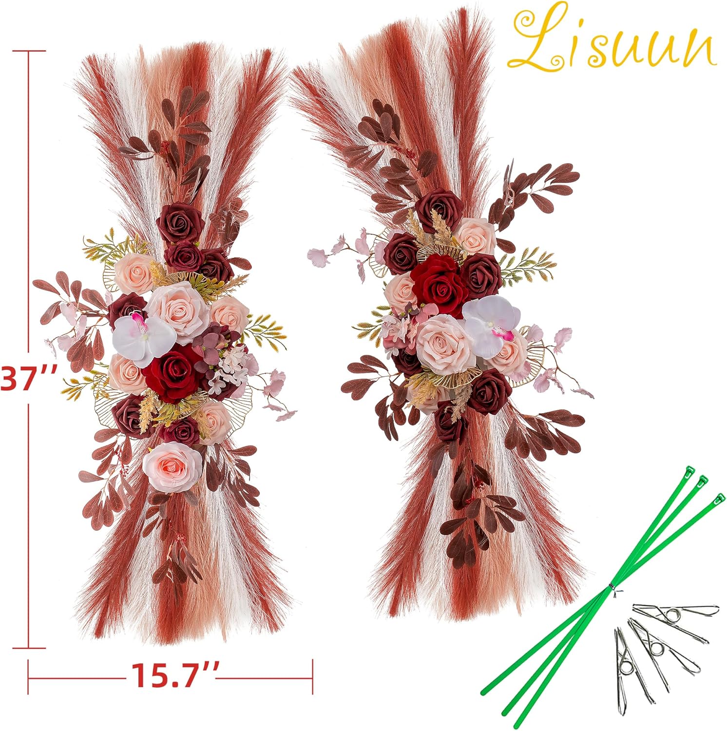 - Enlarged Size:The large flower swag design straightens measures 40" long x 14" wide(100*35cm), small flower tie measures 24" long x 12" wide(60*30cm),the larger size contains more flowers and decorations, let your wedding ceremony more colorful atmosphere.