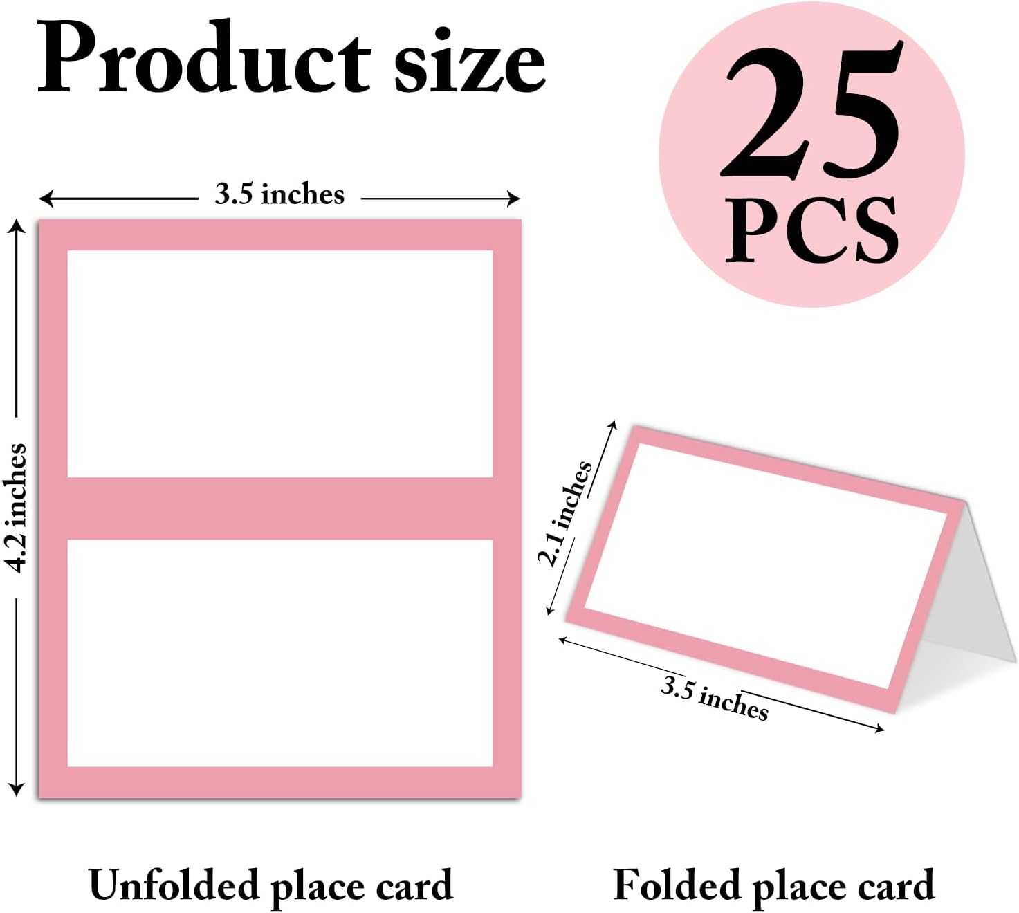 25 Pack Blush Pink Border Place Cards, Editable Name Cards for Table Setting, Tent Cards Food Label for Dinner Party, Bridal Shower, Wedding, Baby Shower and Events -T23