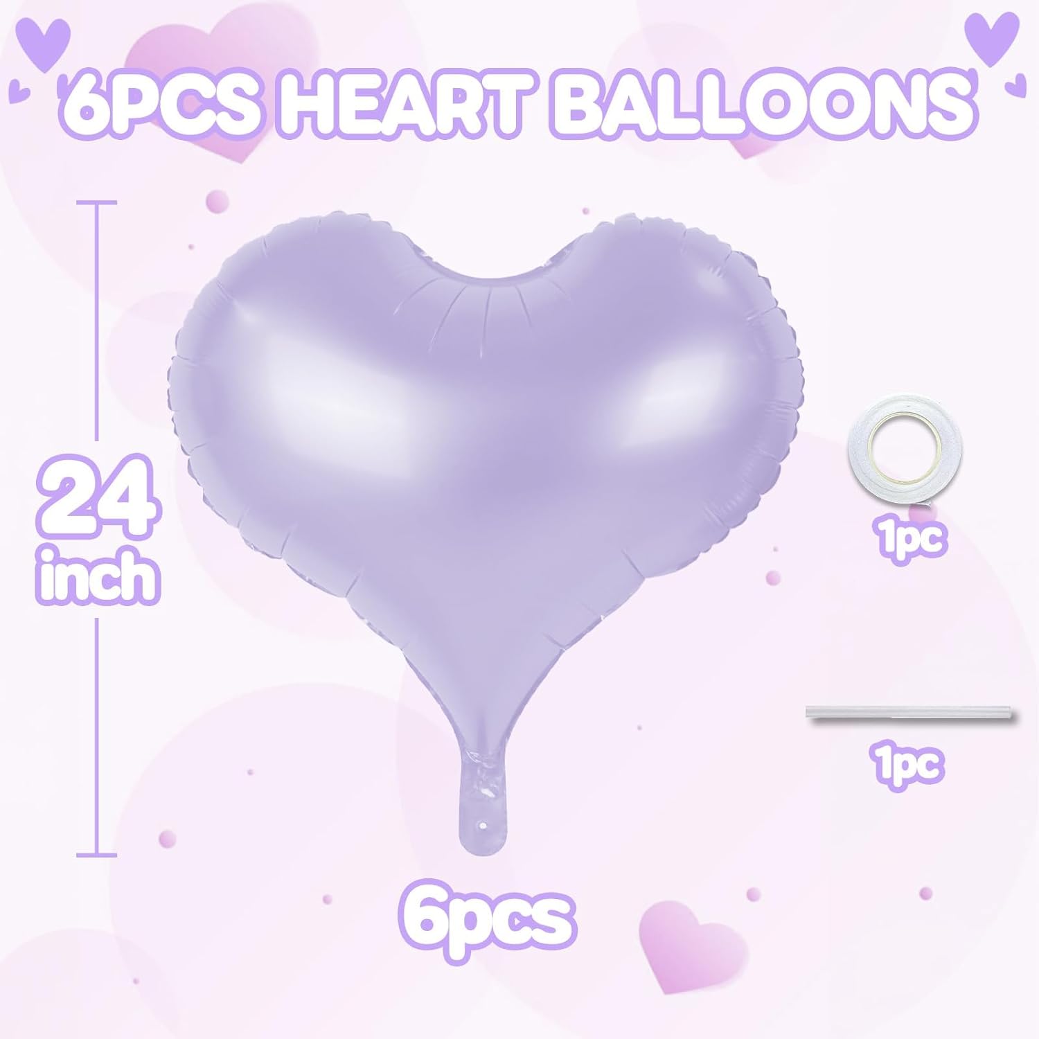 - 24 Inches Heart Balloons - Package contains 6 pcs purple heart balloons, 1pc straw and 1pc ribbon.The purple heart shaped balloons are ideal for any party. 24 inch is big and special enough to decorate your party.