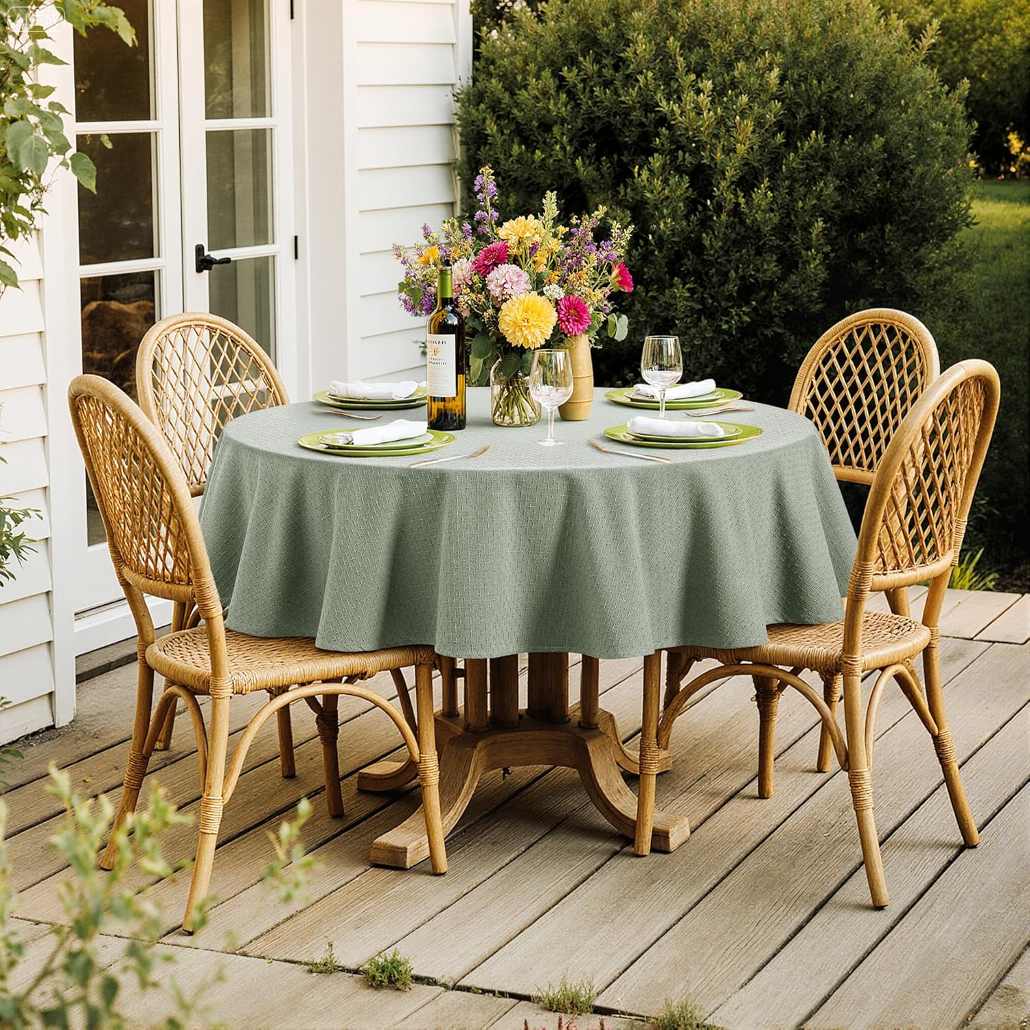 MIULEE Sage Green Linen Cottton Table Cloth Round Tablecloth Waterproof Spillproof Cross-Star Textured Table Cltoth Decorative Farmhouse Style for Dining Party Weddings 60 Inch