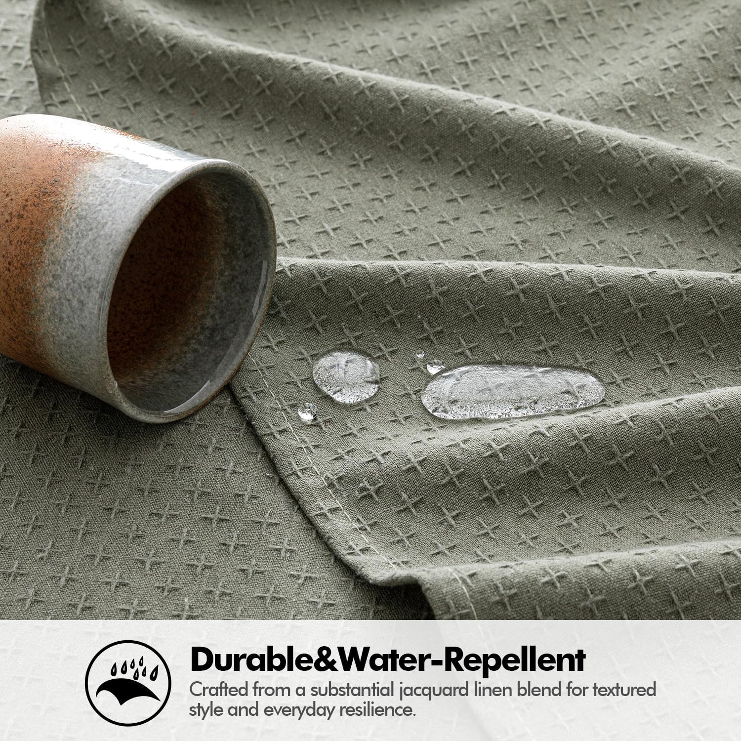 - Elegant Texture: Expertly woven from a heavy-duty cotton-linen blend, 30% thicker than standard tablecloths. Designed with a refined cross-star jacquard weave, it offers a luxurious and elegant look. Olive Green is classic and elegant, enhancing your table with a sophisticated, grounded look.