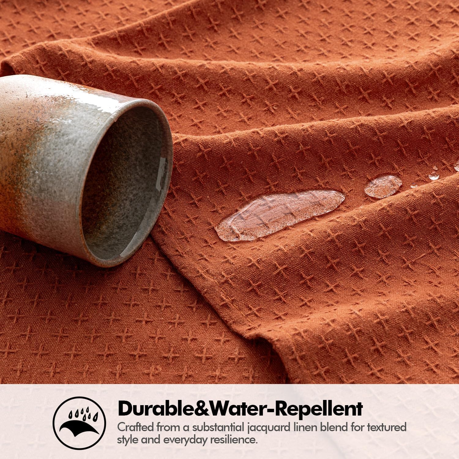 - Elegant Texture: Expertly woven from a heavy-duty cotton-linen blend, 30% thicker than standard tablecloths. Designed with a refined cross-star jacquard weave, it offers a luxurious and elegant look. Burnt Orange is vibrant and energetic, adding warmth and liveliness to your table.