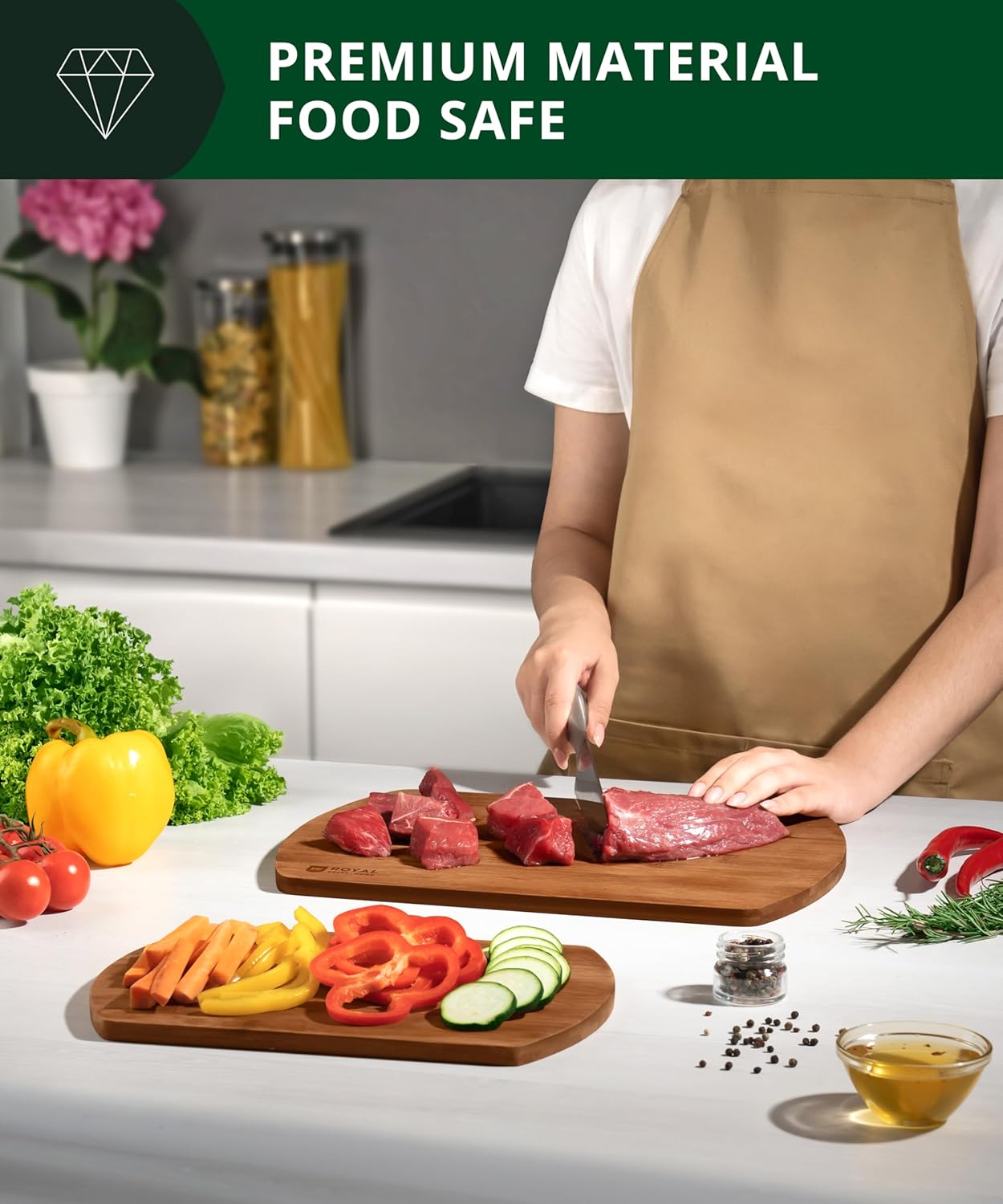 - πππππππ πππππππ ππππππ: Our newly designed 2 piece wood serving boards set is super slim & lightweight for easy use & maneuverability. The Royal Craft Wood bamboo chopping boards are available in 12βx8β, and 15βx10β options for your convenience, making this an all in one kitchen essential, allowing you to easily cut, meal prep, & even serve. Use the small board for quick fruit chopping, medium for multiple vegetables & large for slicing meat or for use as a charcuterie board.