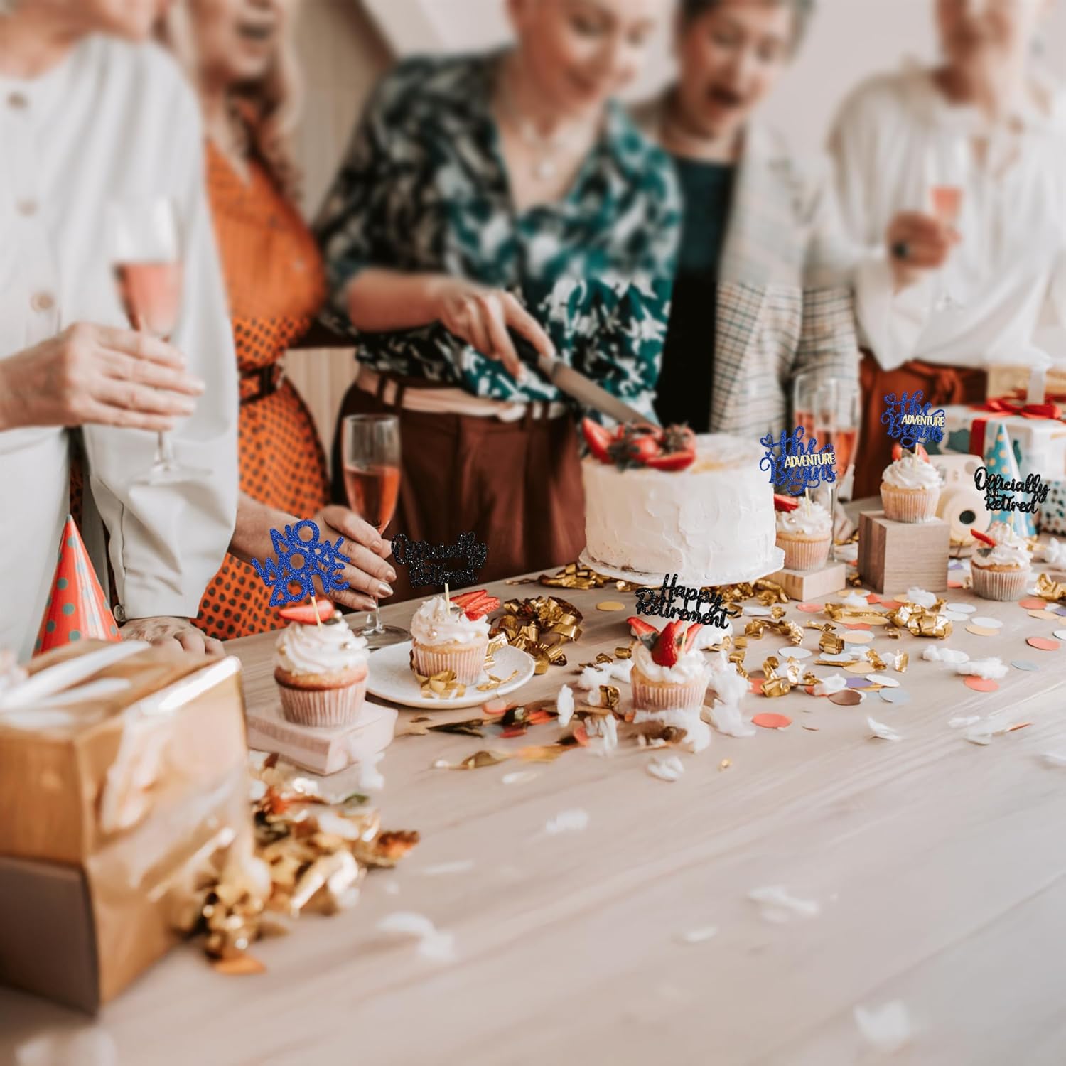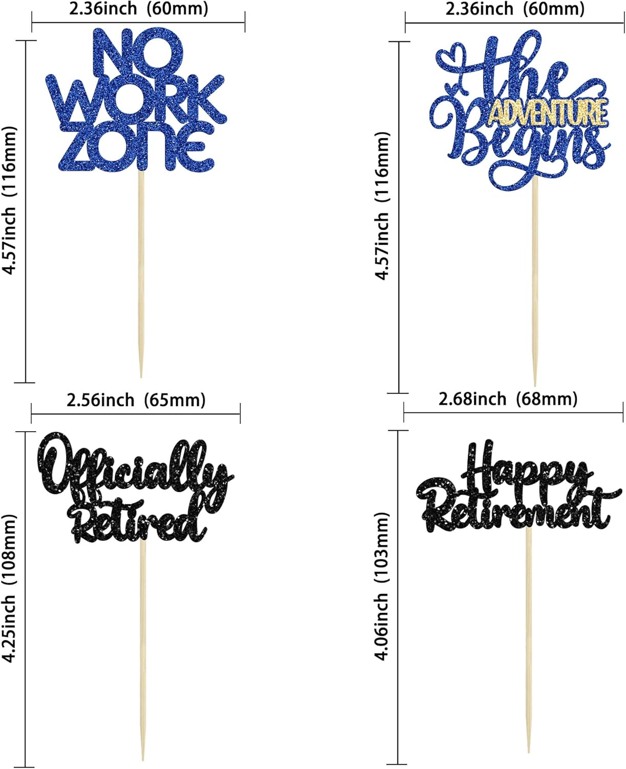 - 【NO Required】: 24Pcs Happy Retirement Cupcake Toppers can put in the cake directly! These Happy Retirement Cupcake Toppers saves your time and super easy to use. You can easily dress up your birthday theme cakes, yes! but don't stop there, put them into desserts, cookies, fruit pieces, appetizers, muffins and so much more!