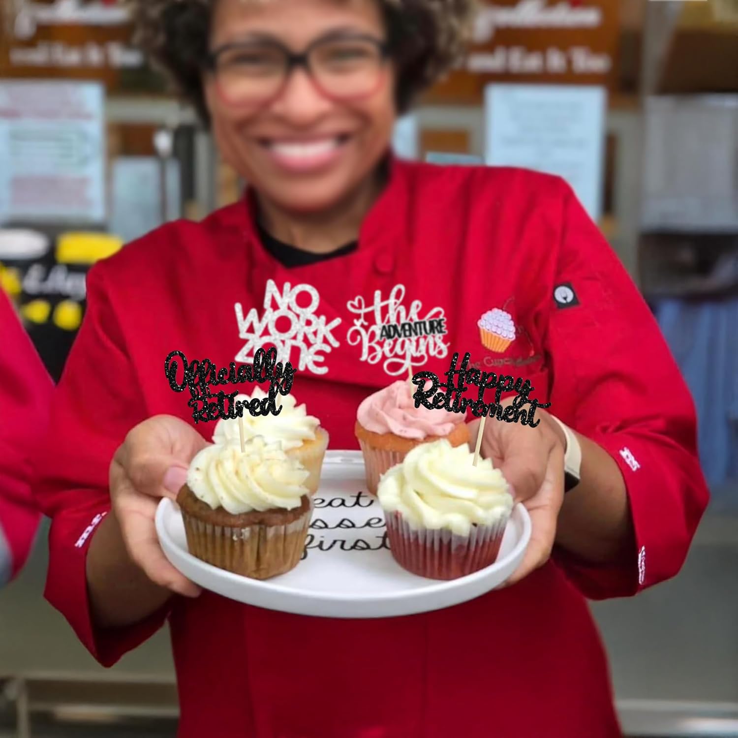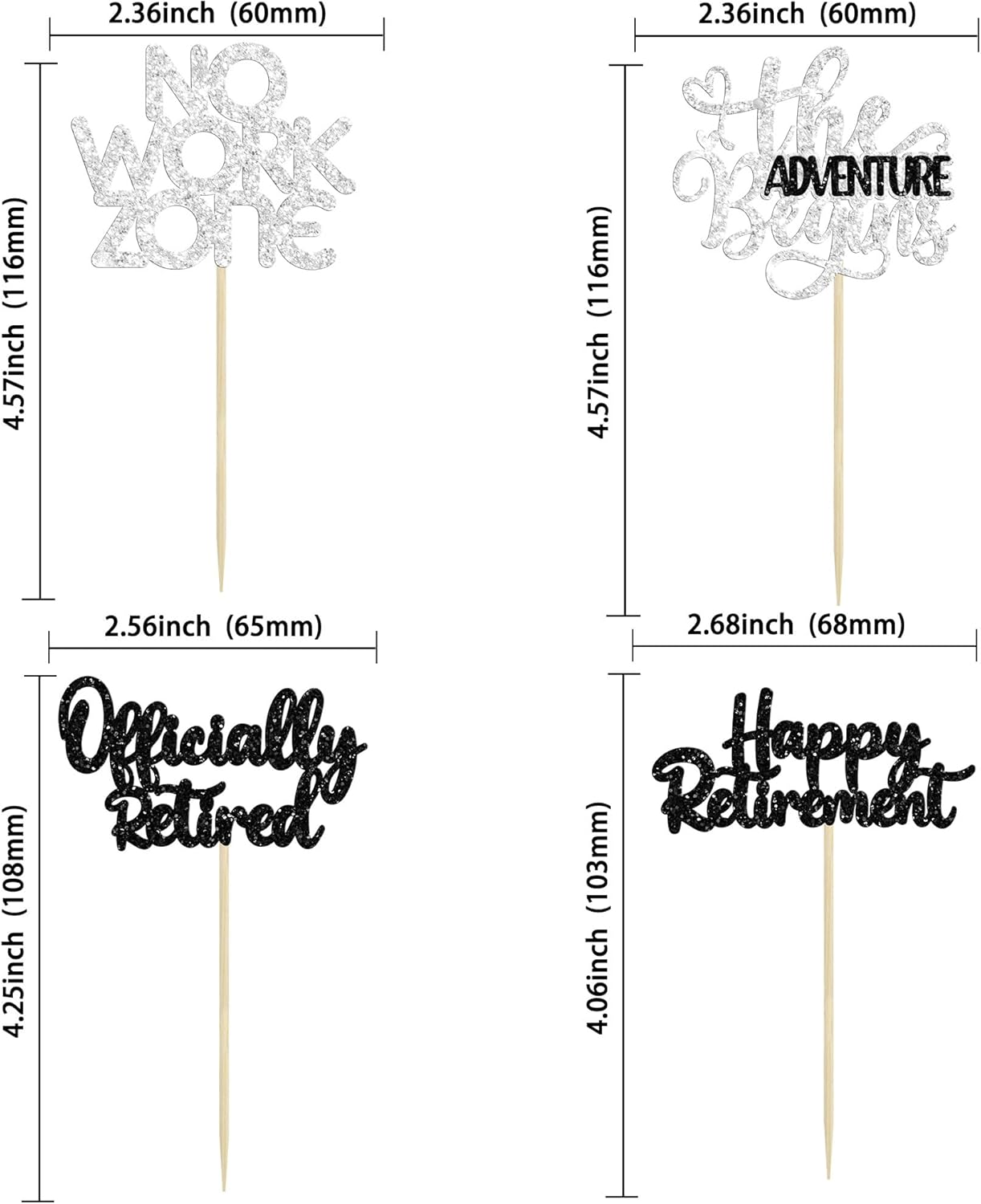 - 【NO Required】: 24Pcs Happy Retirement Cupcake Toppers can put in the cake directly! These Happy Retirement Cupcake Toppers saves your time and super easy to use. You can easily dress up your birthday theme cakes, yes! but don't stop there, put them into desserts, cookies, fruit pieces, appetizers, muffins and so much more!