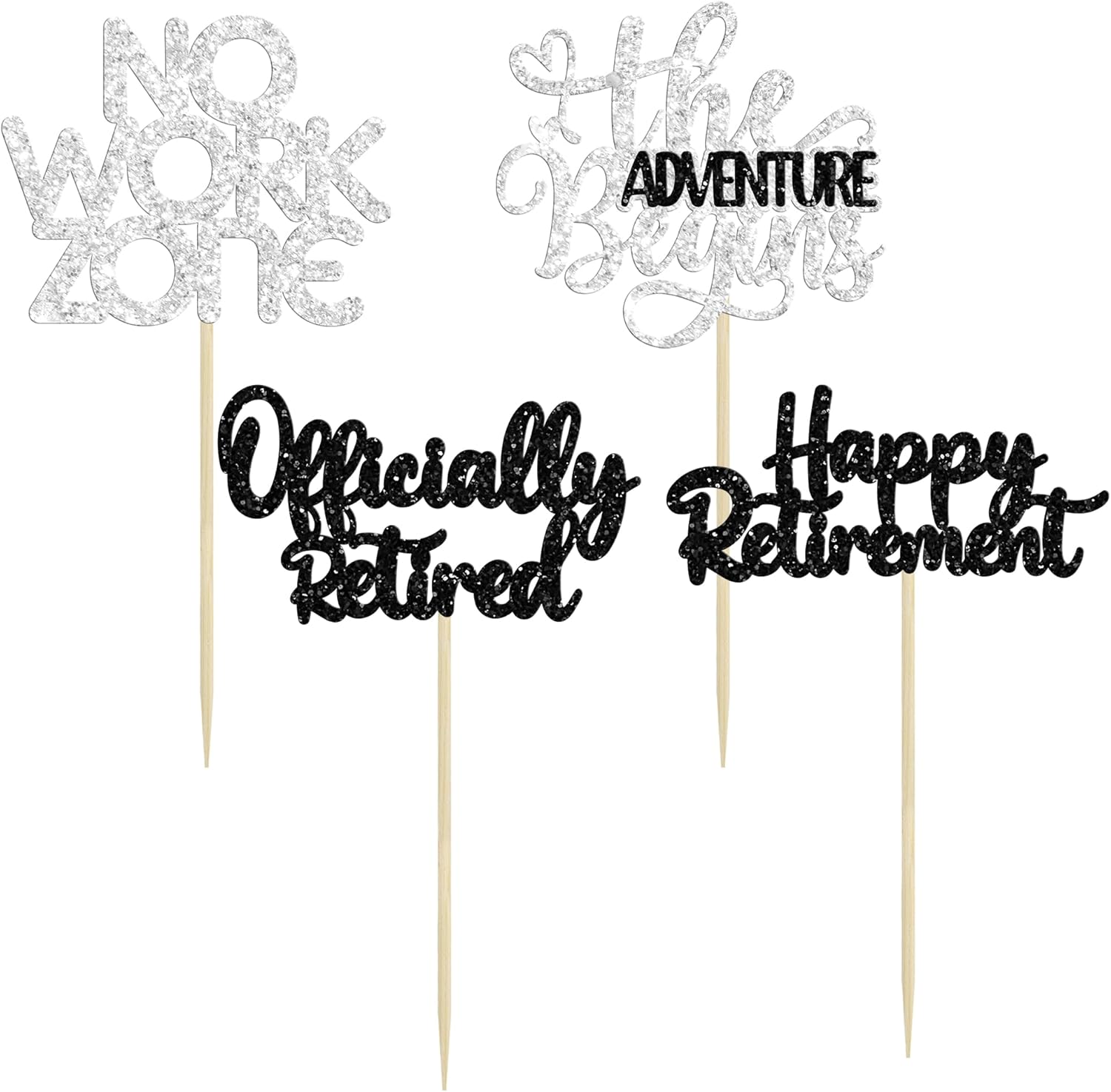 24Pcs Happy Retirement Cupcake Toppers Officially Retired Cake Toppers No Work Zone Adventure Begins Cupcake Picks Retirement Theme Farewell Birthday Party Decorations Supplies Silver