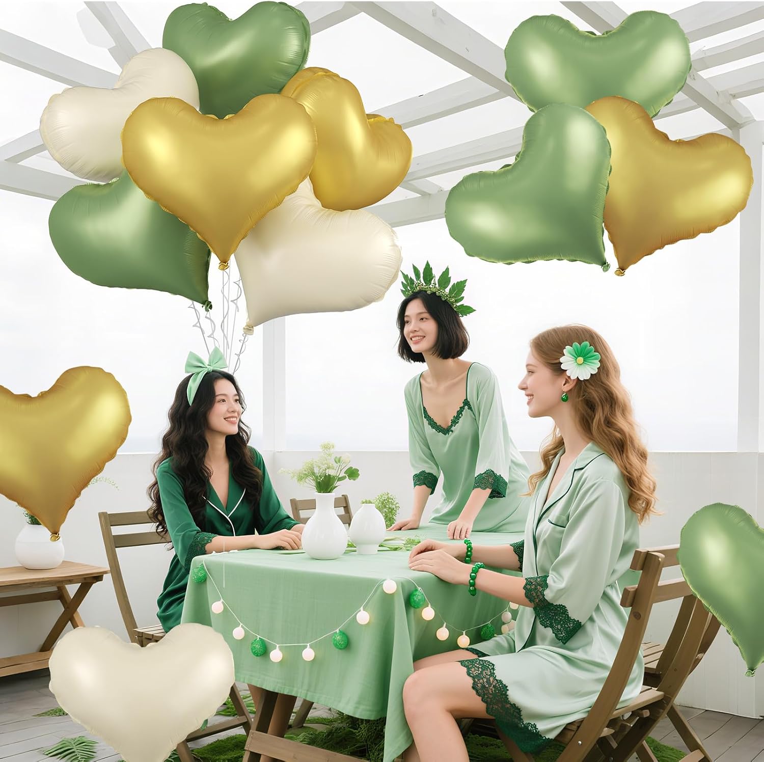 - Package: This set includes 6pcs of 24inch heart foil balloons(olive green*2,cream white*2,gold*2),1 ribbon,and 1 straw.The generous size makes these balloons perfect for transforming any space into a festive celebration venue, whether you're decorating for a wedding arch, photo backdrop, or party centerpiece.