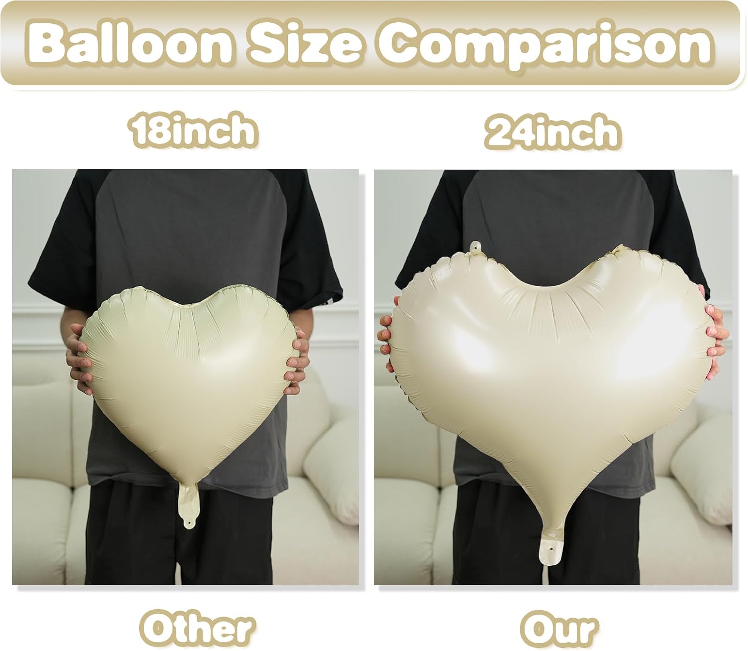 - Package: This set includes 6pcs of 24inch heart foil balloons(brown*2,cream white*2,pink*2),1 ribbon,and 1 straw.The generous size makes these balloons perfect for transforming any space into a festive celebration venue, whether you're decorating for a wedding arch, photo backdrop, or party centerpiece.