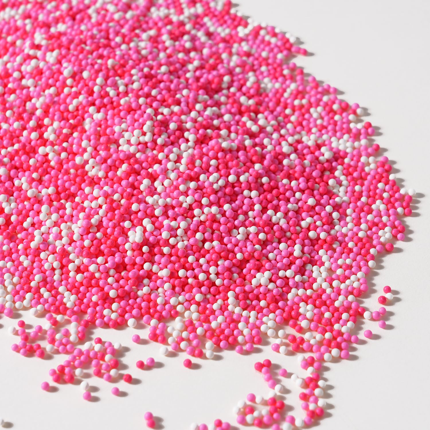- Pink and White Nonpareils Sprinkles: A bottle of 2mm matte edible pearl sprinkles(120g/4.23oz), whether it's cakes, cupcakes, cookies, ice cream, cake pops, brownies, or any dessert you can dream of; our sprinkles are your go-to for that extra dash